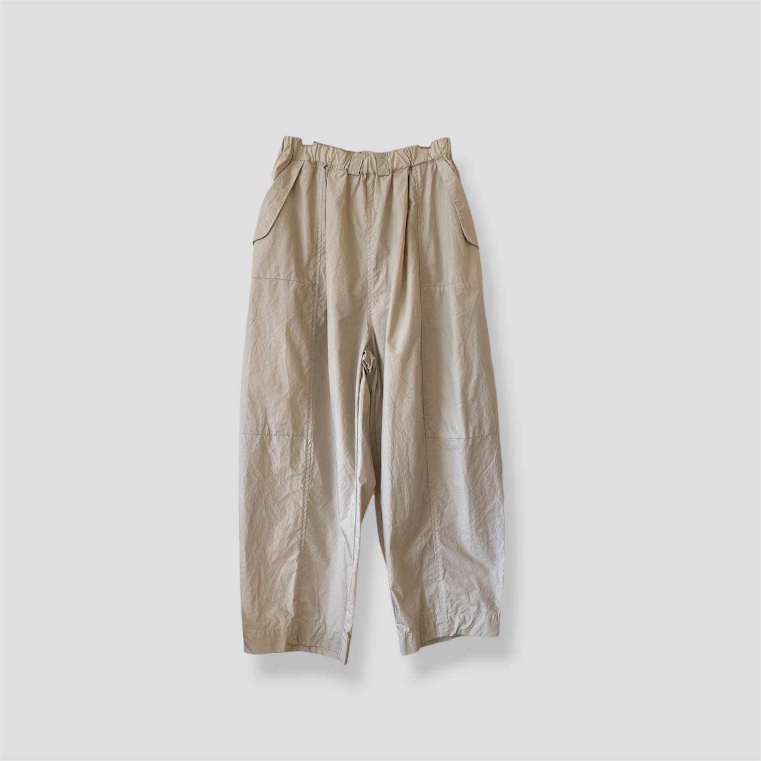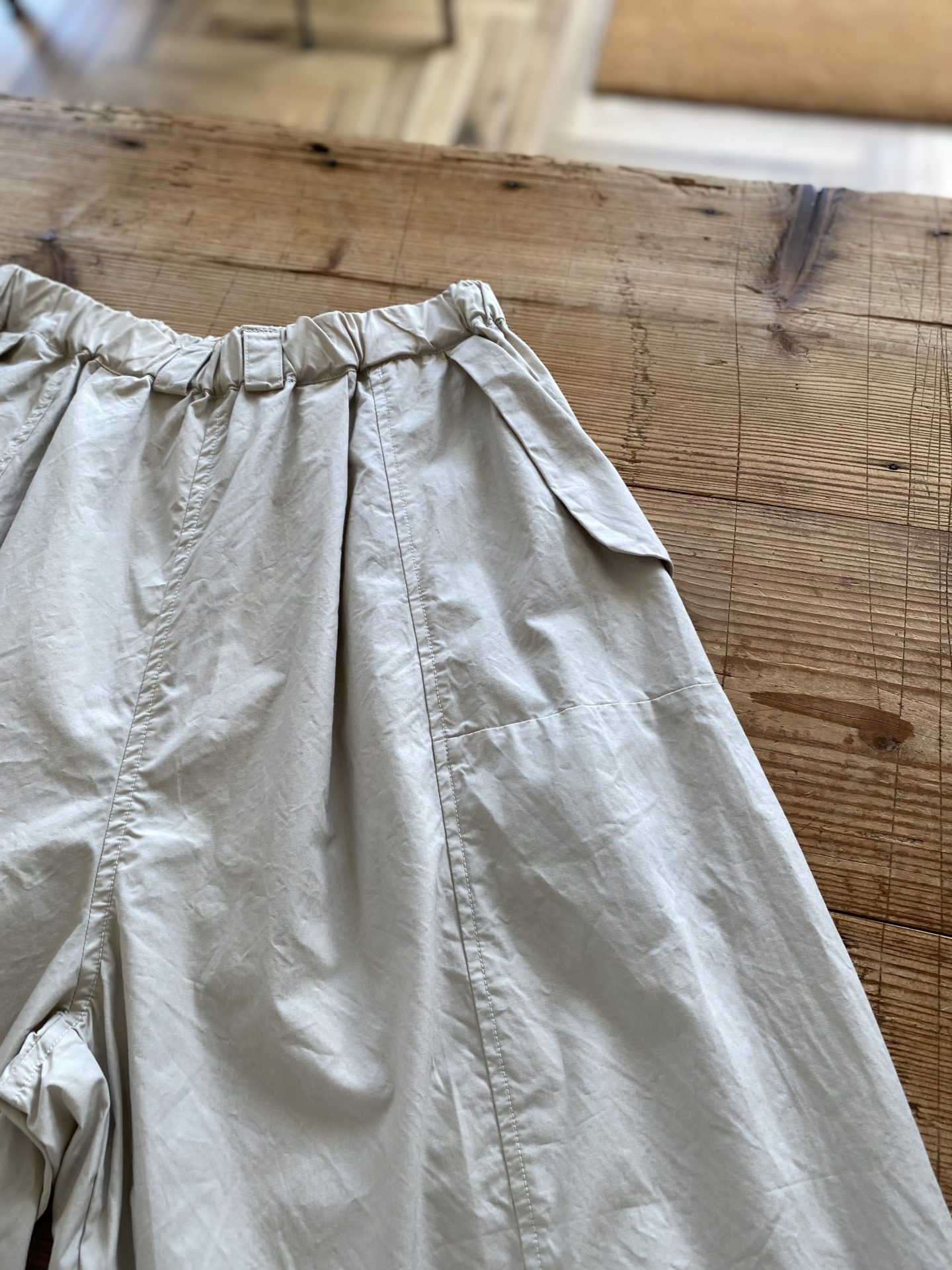 ウエストをゴムにしストレスフリーなのはもちろん、たっぷりとした生地をつまむ事でヒップ周りにゆとりができてとても楽な履き心地です。