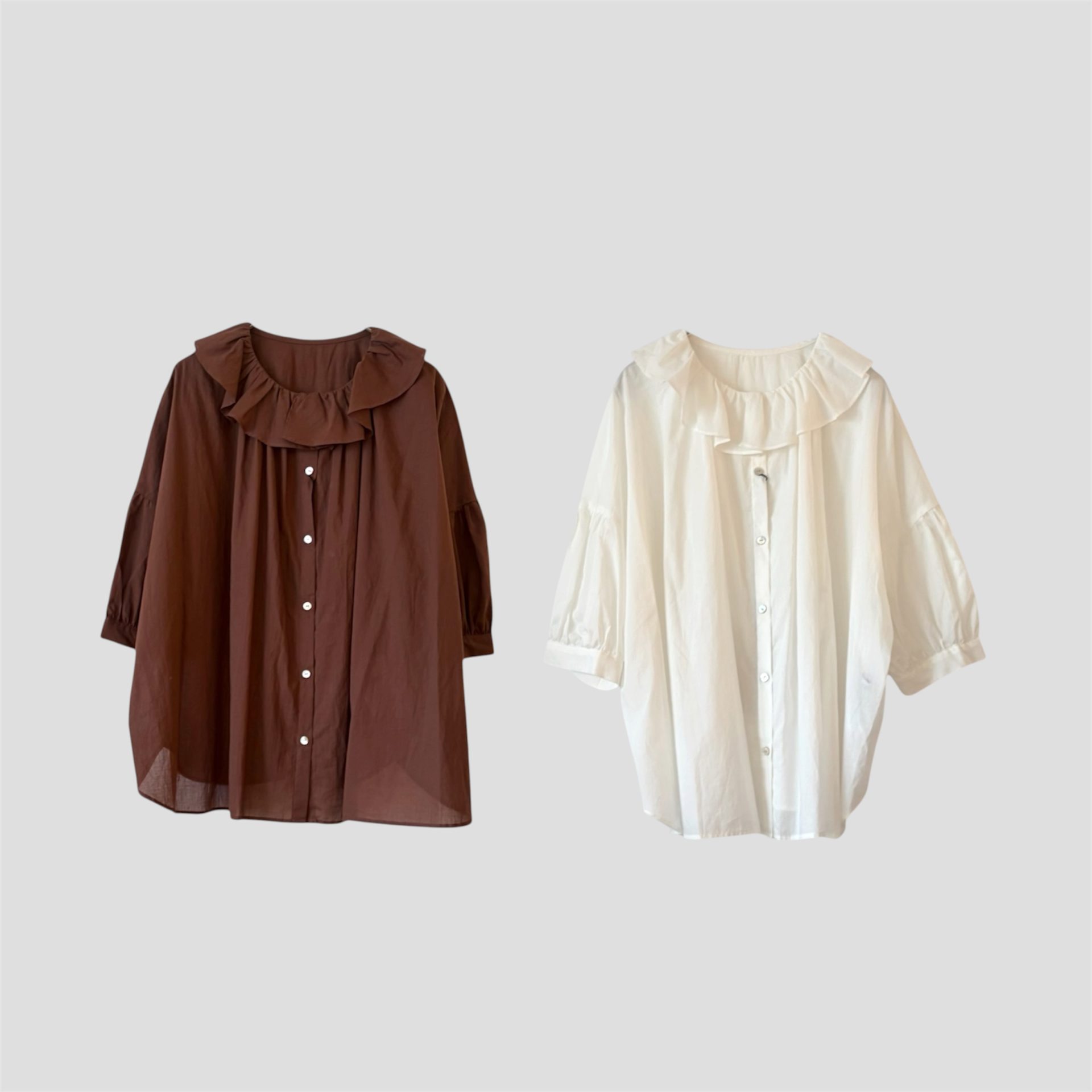 Bico Utilite フリルカラー5分袖ブラウス 高級感あふれる生地感です。 サラッと綺麗めに着れる1枚ですよ! 綿 100% 18,700yen 2026-04-15 by chabbit utilite < STAMP AND DIARY ynir >