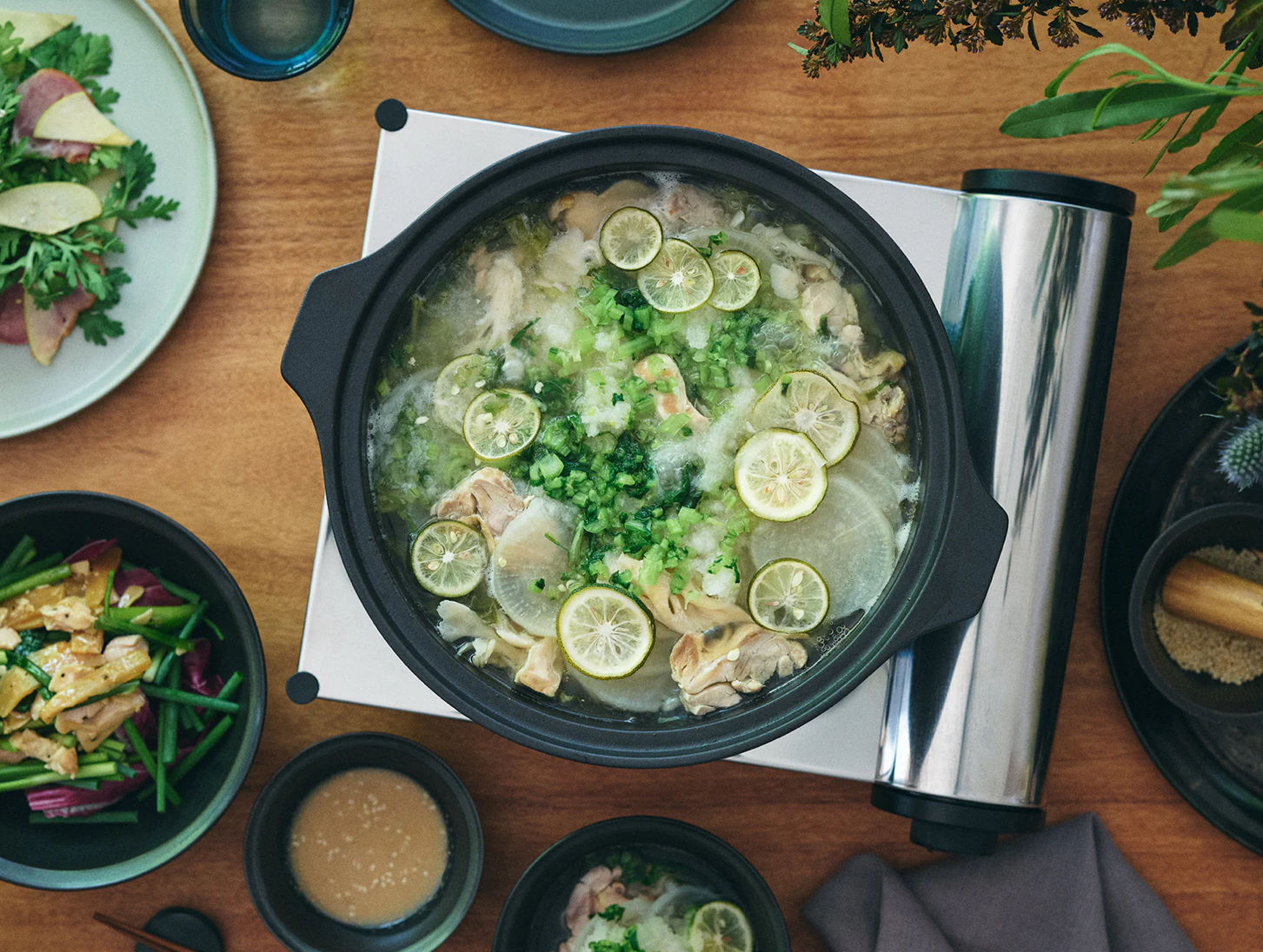 すのこを外せば寄せ鍋や調理鍋としても使えます。