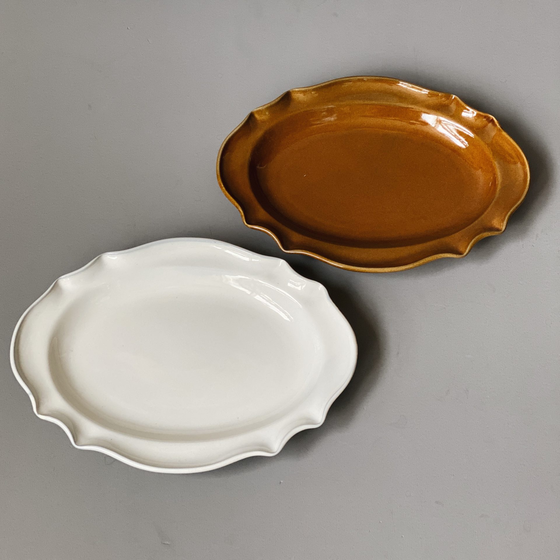 chabbit フェルメ フェルメ フェルメはフランス語で農家、という意味。南仏の古い食器をイメージして作られました。裏印の〝cour de ferme〟は「農家の庭」という意味。自分たちで育てた野菜をたっぷり食べるような、おおらかな器に仕上がりました。食器を縁取る形が美しく、料理を引き立てます。普段使いやおもてなしにも使って欲しいアイテムです。 ラウンドプレート…1600yen(+tax) オーバルプレート…3000yen(+tax) 2020-09-14 by chabbit chabbit kitchen studio m’ < ルポゼ ブリュロ >