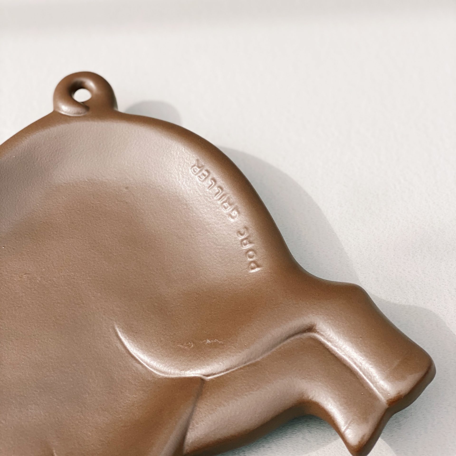 目を惹きつける豚の顔。ご機嫌なのか、不機嫌なのか、一言では言い表せない愛嬌のある表情が魅力のステーキ皿です。お店で出てくるステーキやハンバーグの鉄板を家でも気軽に楽しんで使ってもらいたいと企画。調理した肉料理をそのまま食卓に運んで熱々をいただく。特別感のある茶目っ気たっぷりの器で素敵な時間をお過ごしください。