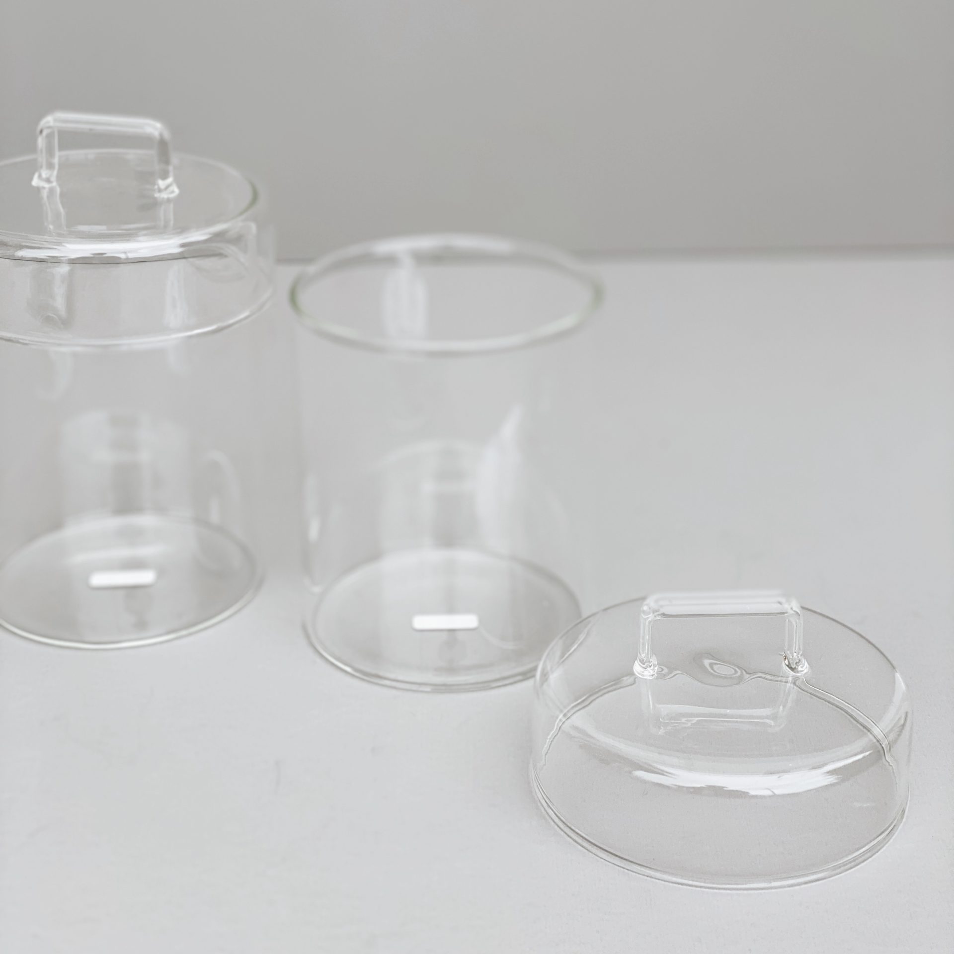 chabbit ガラスキャニスター ガラスキャニスター 再入荷 持ち手のついたフタ付きなので、中身を衛生的に保てます。 コットンや綿棒を入れてお化粧台の上に置けば、毎朝のメイクタイムが楽しみになります。 食品も入れられる容器なので、クッキーやティーバックを入れて、ティータイムのお供に添えるだけで素敵な空間をつくってくれます。 S…1650yen M…1980yen 2021-04-22 by chabbit chabbit kinto kitchen < ホーローマグ ガラスベース >