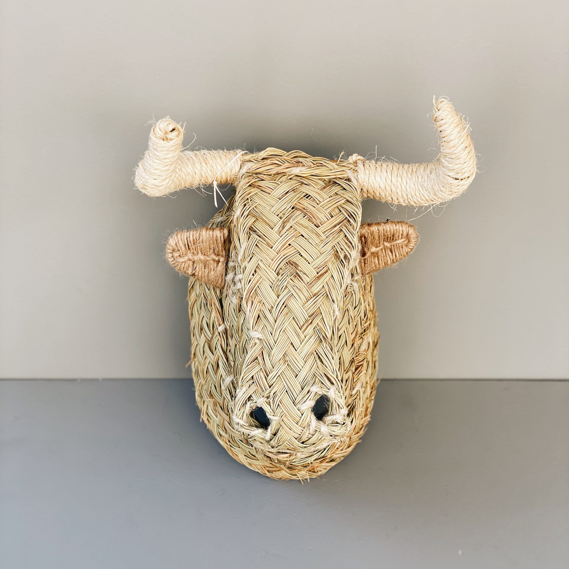 エスパルトグラス(アフリカハネガヤ)を使用しスペイン南部の伝統的な編み方で、全て手作業で作られたなんとも牧歌的なウシのウォールオブジェ。