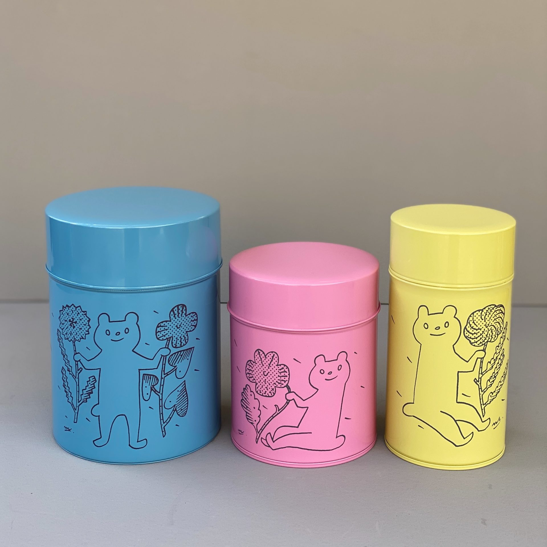 明治28年創業の老舗製作所手作りの保存缶に鹿児島睦さんのイラストをプリントしました。