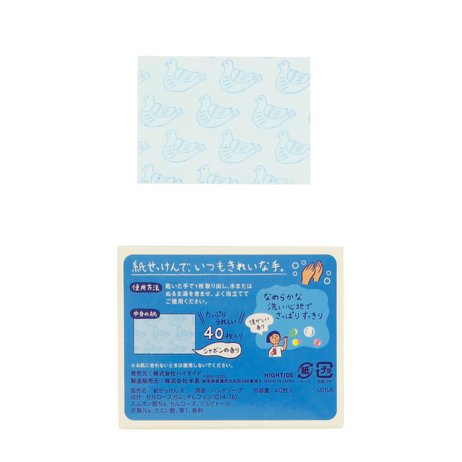 かわいい柄に気分が弾むニューレトロの紙せっけん。40枚入りの柄付きで、それぞれ配合成分・香料が異なります。ガムのケースのような薄い紙ケース入りで、ポケットに入れて持ち運べて、かさばりません。適度に泡立ち、洗い上がりもさっぱりして気持ちいい使い心地です。
