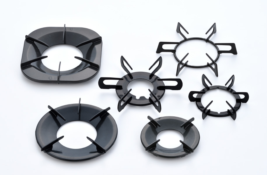 一辺につき2つ、角にも2つずつツメを付けることで形や大きさなどコンロのタイプが異なってもツメの間にある溝にガチッとハマってズレない土台をつくります。