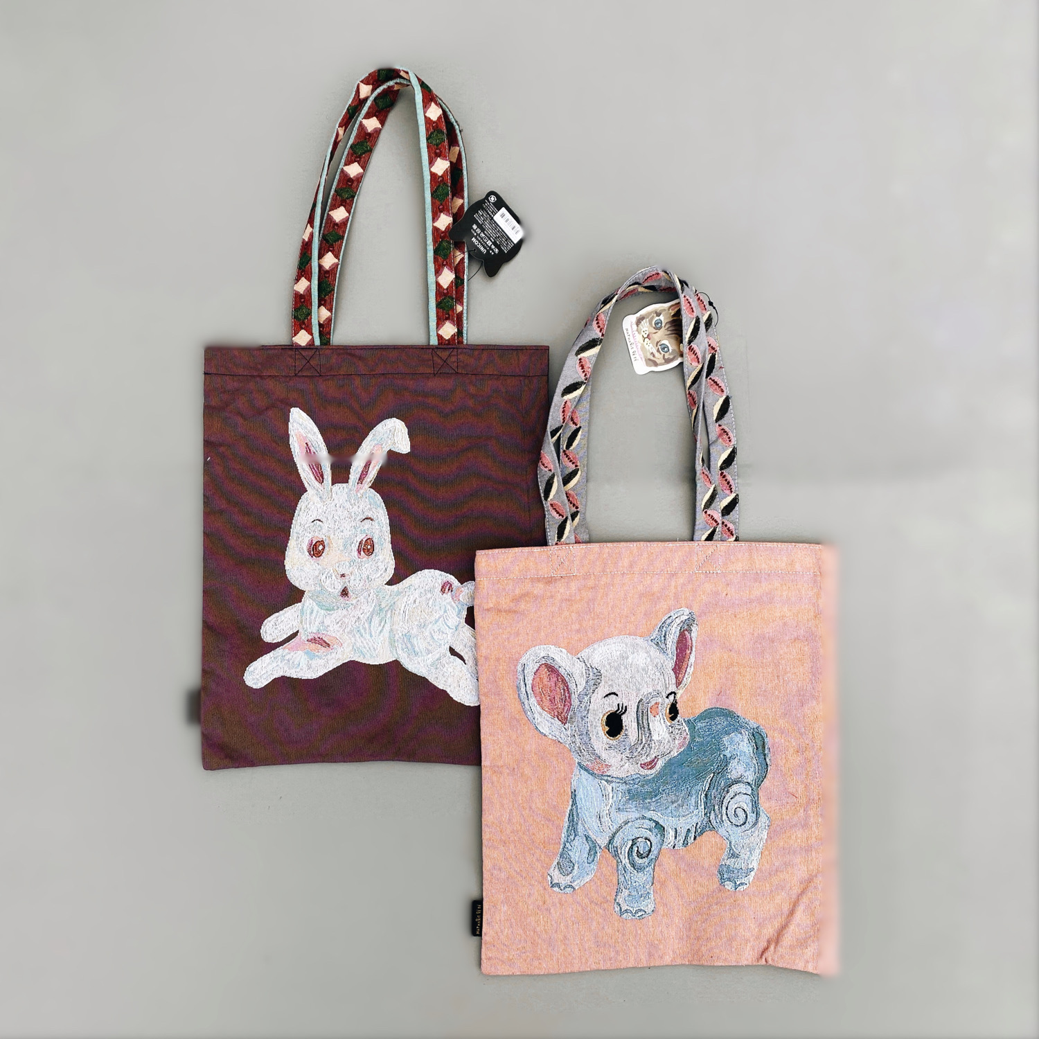 chabbit ナタリーレテ トートバッグ ナタリーレテ トートバッグ 可愛いイラストと色合いがなんとも言えない トートバッグ。 持ち手も可愛いです♪ 2750yen 2022-05-28 by chabbit bag chabbit NathalieLete < ナタリーレテ drawstring bag Satin drawstring pouch >