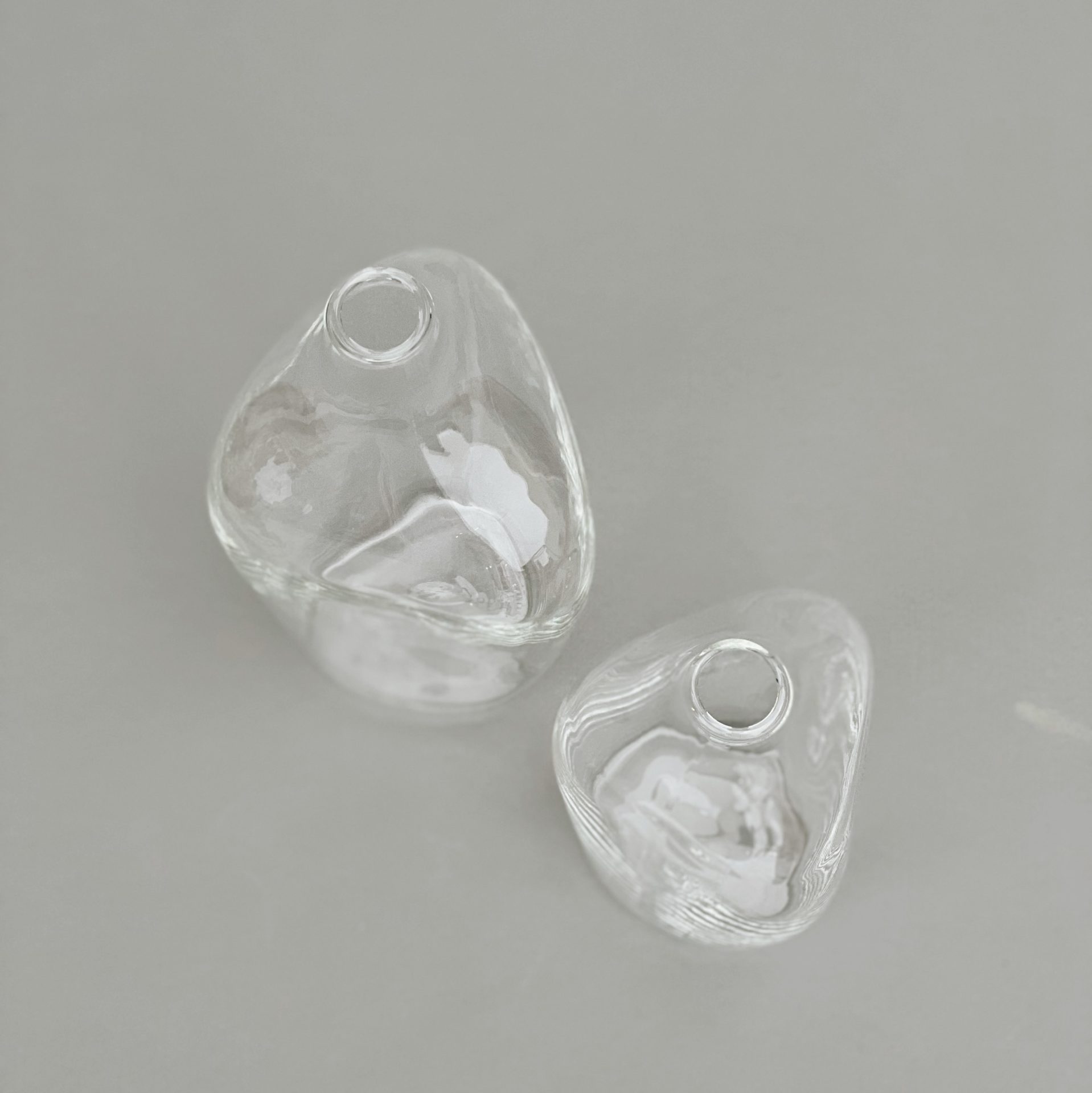 クリアガラスのスタイリッシュな形のフラワーベースです。