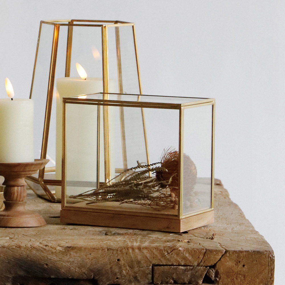 インテリアに馴染みやすい、オークWOODをベースにBRASSフレームで出来たガラスのディスプレイボックスです。