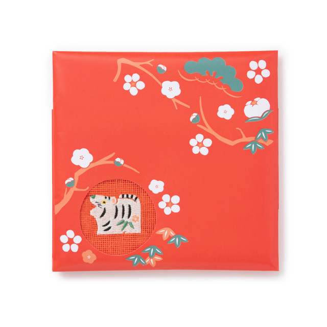 華やかな干支の刺繍が入った、正方形の小さなふきんです。