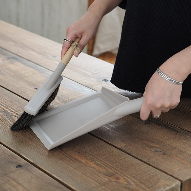 軽くて使いやすいポリプロピレンのちりとりと、ウッドハンドルのほうきの組み合わせのセットです。馬毛のしなやかなブラシが細かいゴミまでしっかりキャッチし、ストレスなくお掃除できます。