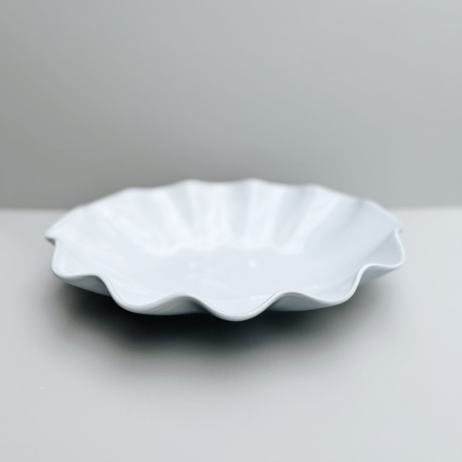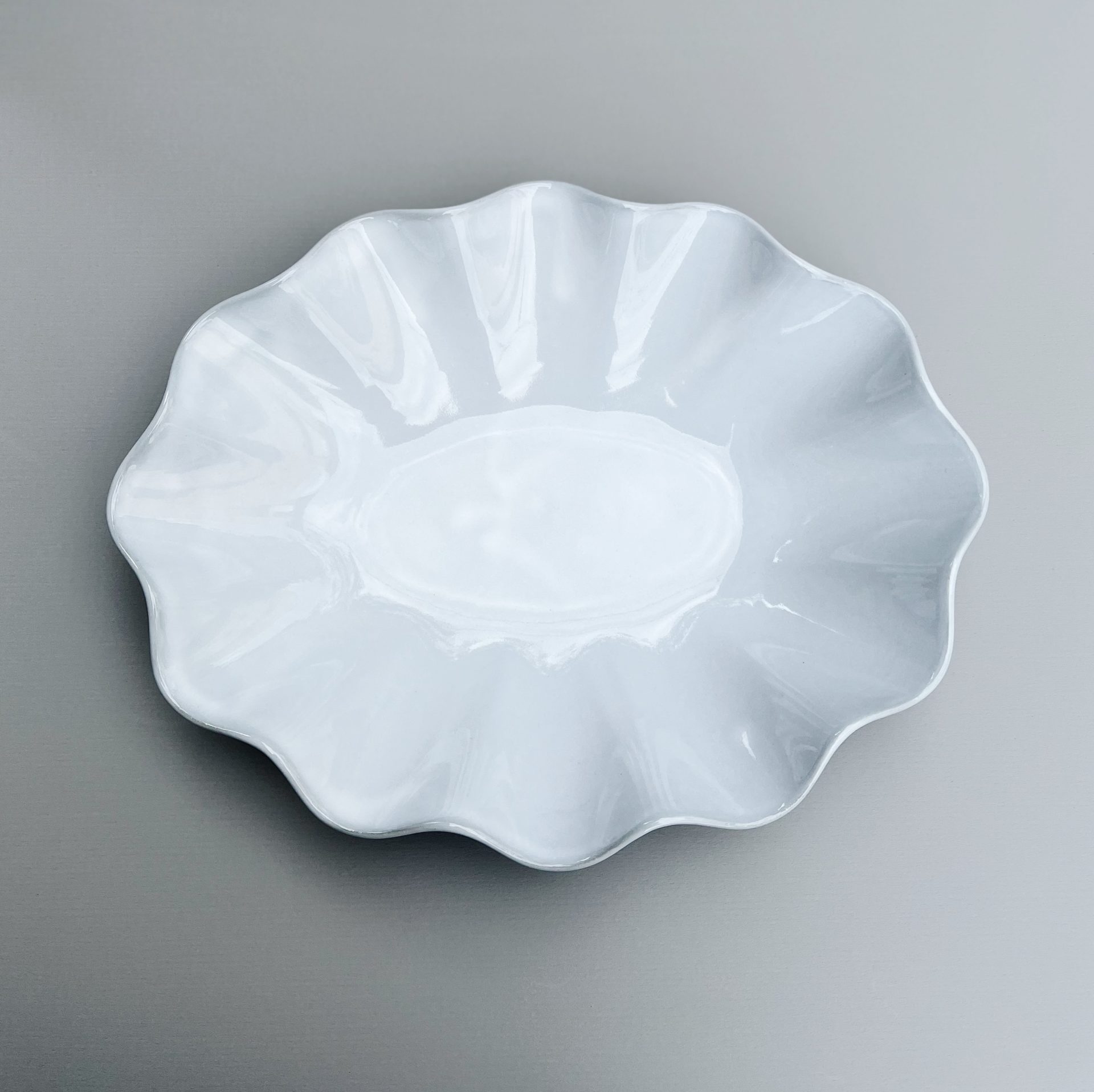 縁が大胆な波形になっているオーバルボウルは存在感があり、エレガントさも目を引きます。