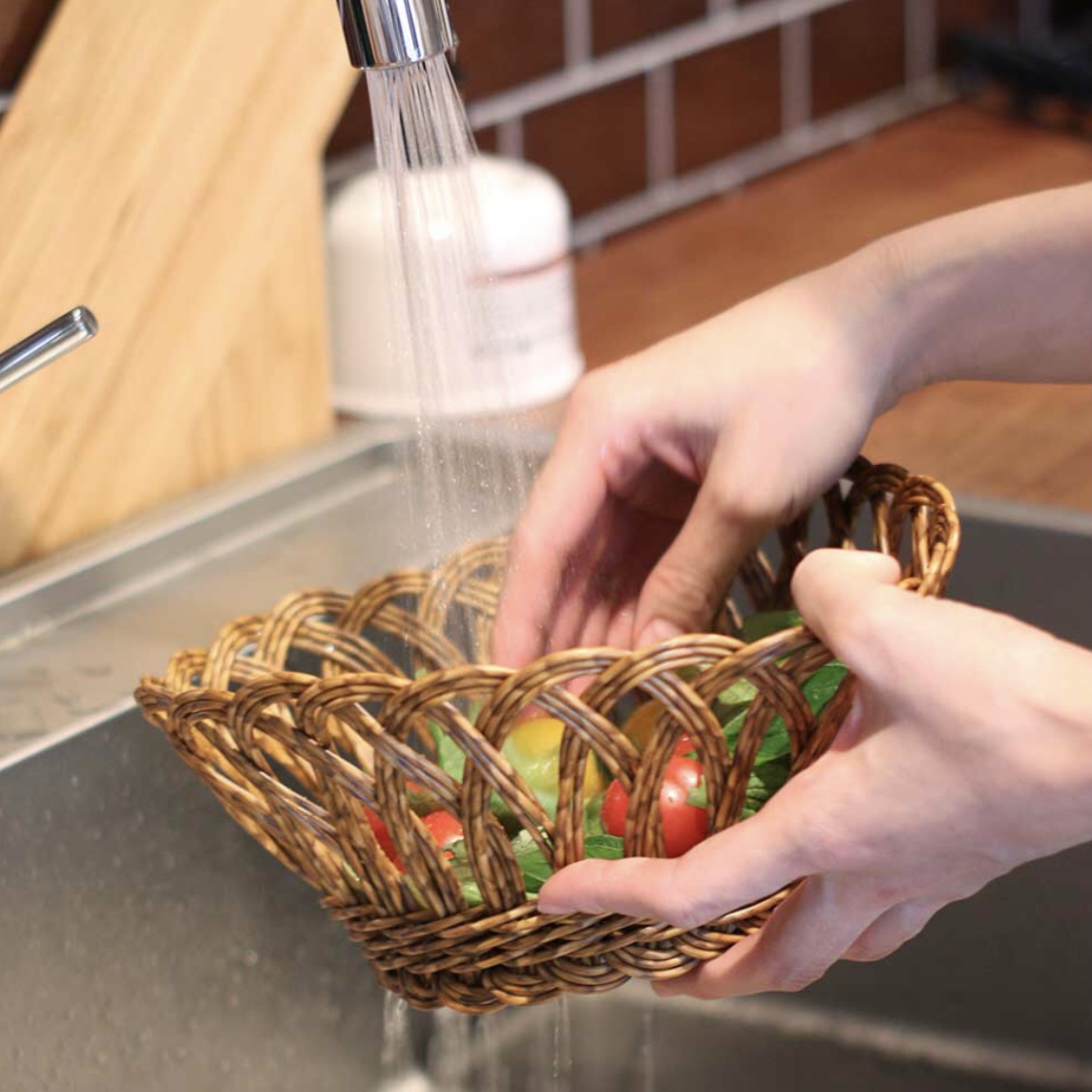水洗いができる、見た目と機能性にこだわった手編みのバスケット。