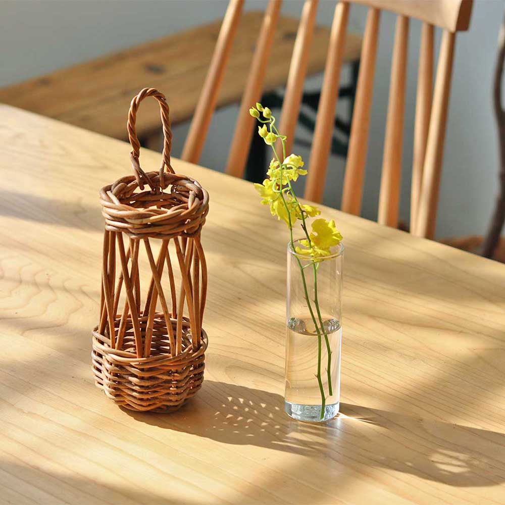 アラログバスケットの中にガラスベースが入っているので、 生花も飾ることが出来ます。