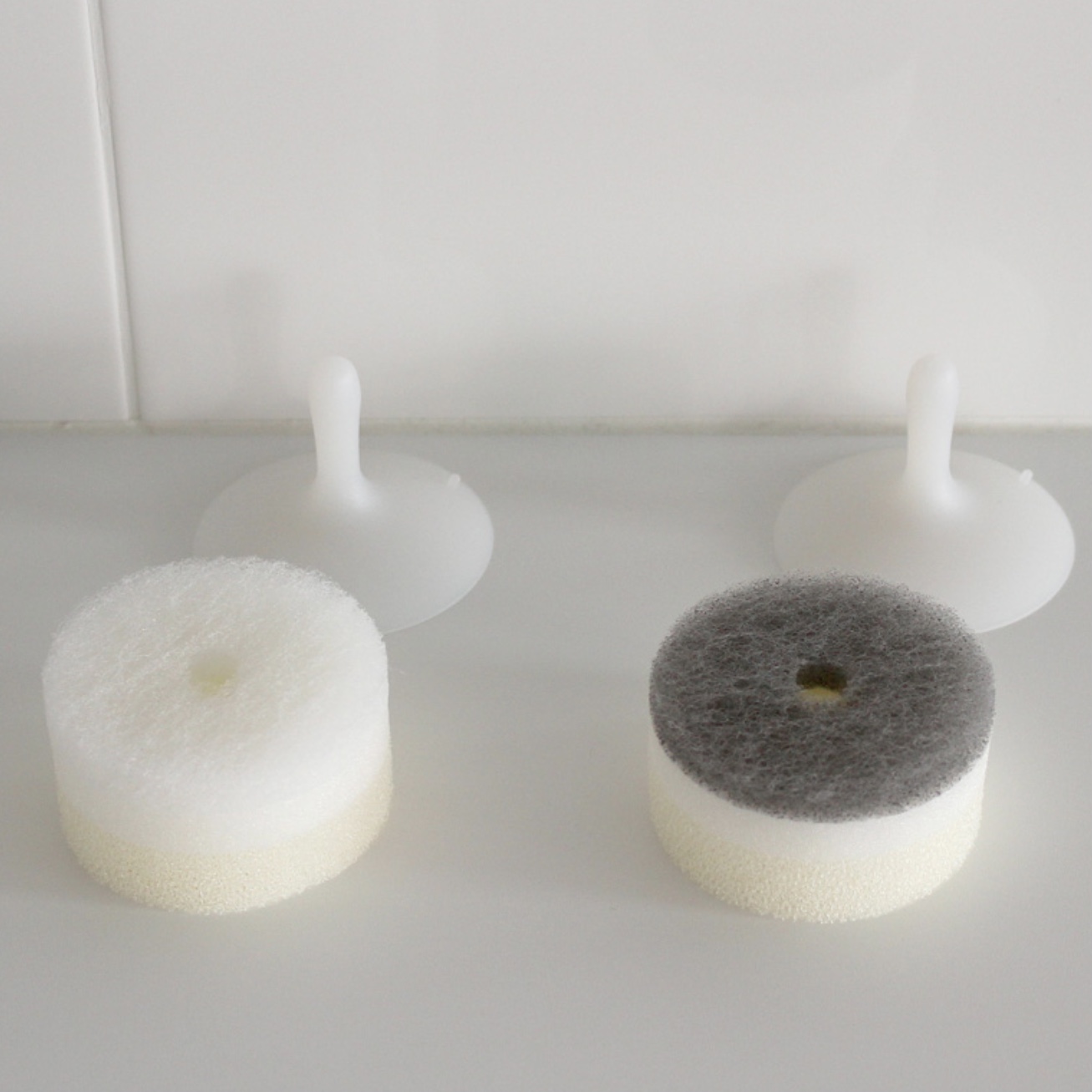 洗面台まわりの好きな位置に吸盤で取り付けるスポンジです。