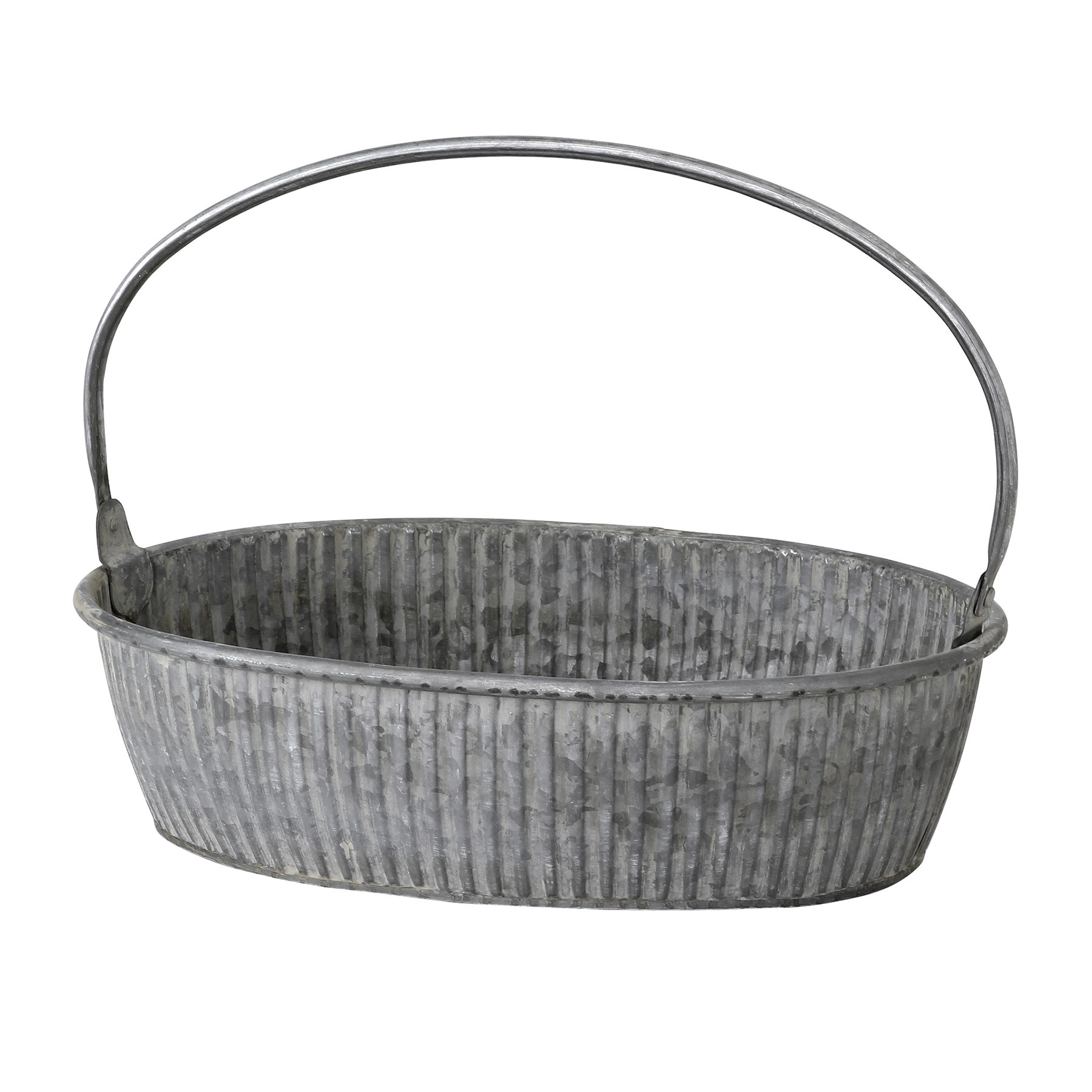 ハンドル付きは移動させたい時に便利です。またハンドルは可動するので下ろして使うこともできます。植物が主役になるシンプルなブリキと曲線が素敵な印象です。