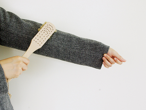 もともとはブックブラシをアレンジしてつくったブラシなので、取り回しが利き、ハンガーにかけたままのお洋服もブラッシングしやすいと思います。
