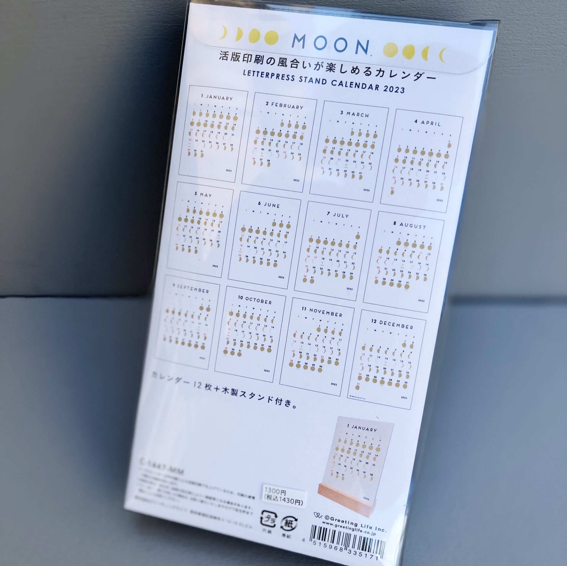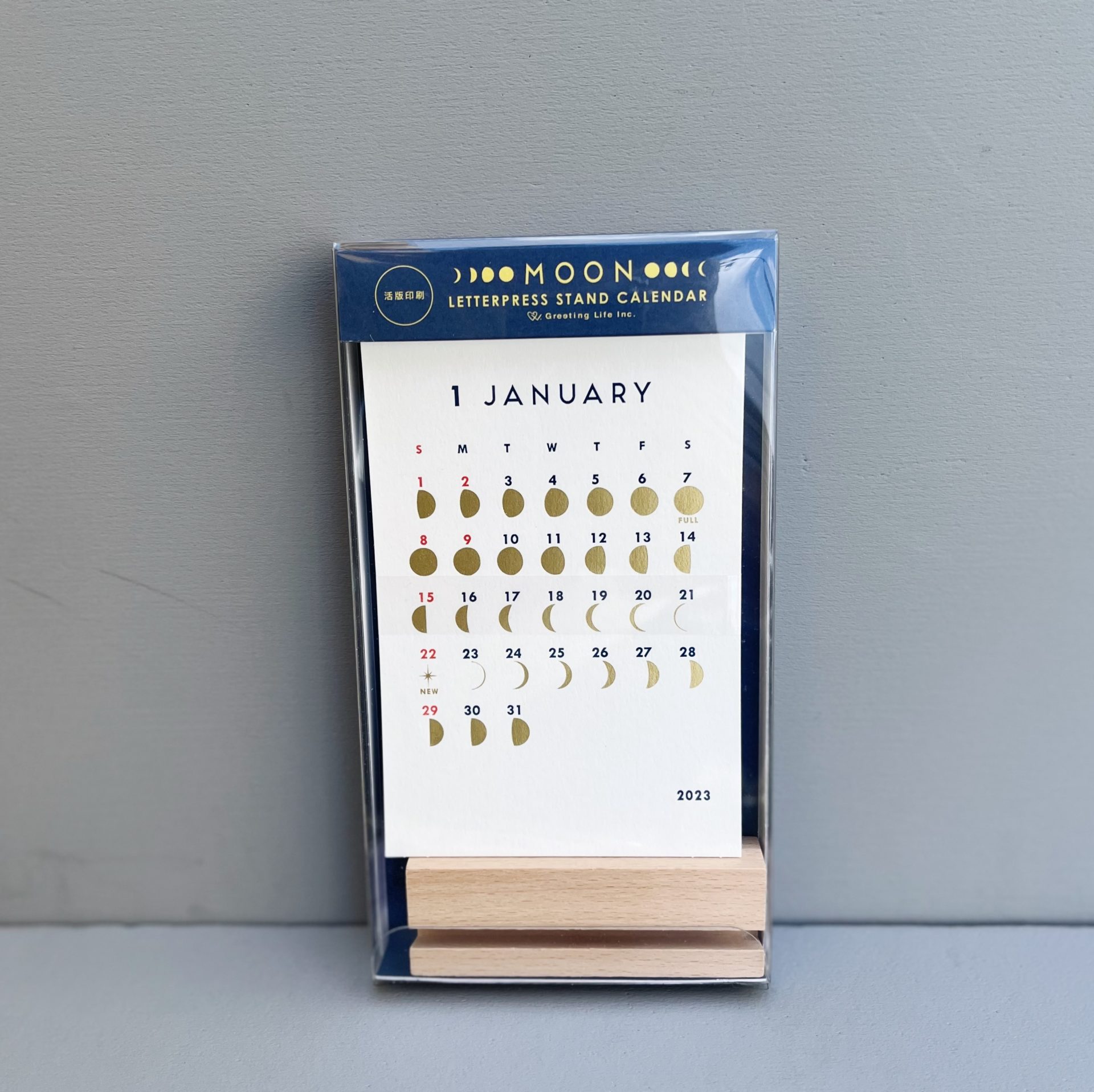 月の満ち欠けをゴールド箔で表現したシンプルで上品なカレンダー。