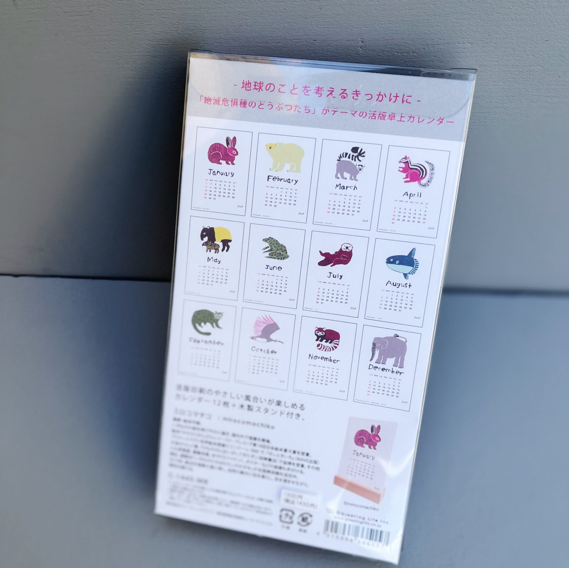 ミロコマチコが描く「絶滅危惧種の動物たち」をテーマに12ヶ月描き下ろされたカレンダー。