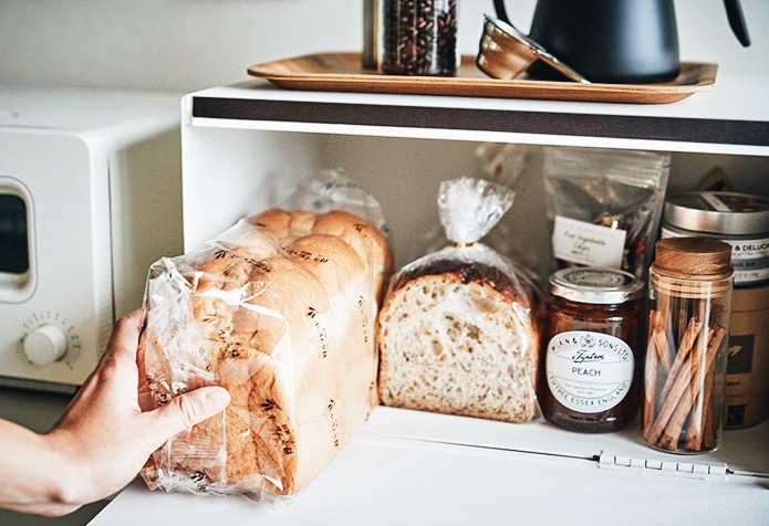 トースターを乗せれば、ケースに収納したパンを取り出してすぐに焼くことができて便利です。
