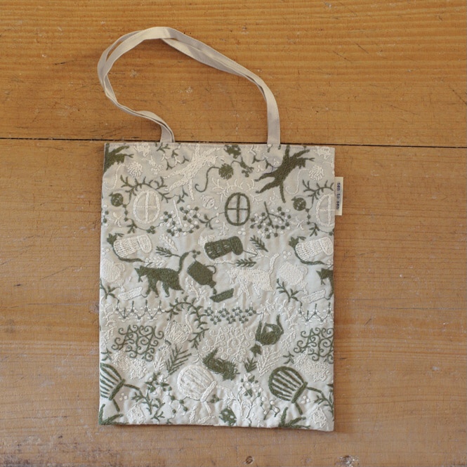 chabbit 小さな刺繍バッグ 小さな刺繍バッグ タテ約24×ヨコ約20cm 持ち手長さ32cm 綿100% cat グレー、ネイビー、グリーンの3色です。 3850yen 2023-01-21 by chabbit bag chabbit 倉敷意匠 < パイルガーゼハンカチ 小さな刺繍バッグ 紺 >