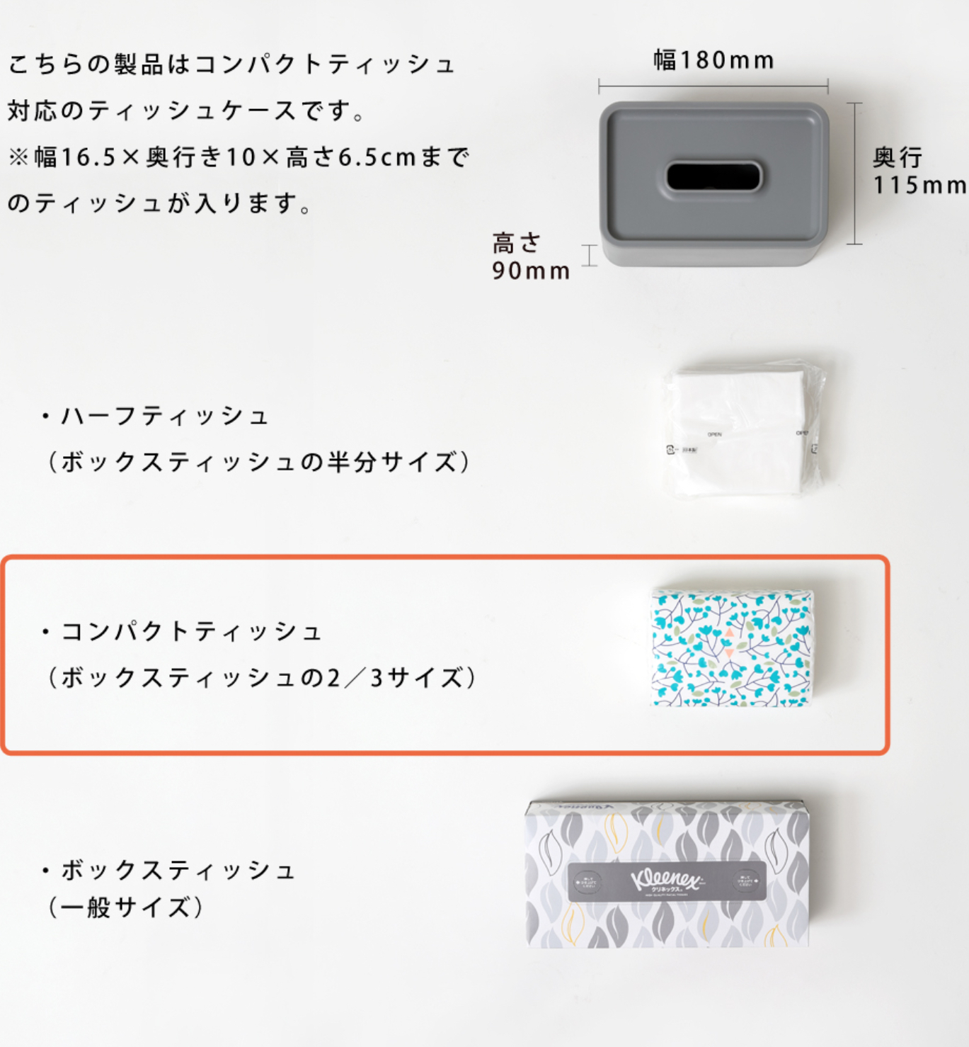 環境と経済性を配慮しコンパクト化するティッシュ。