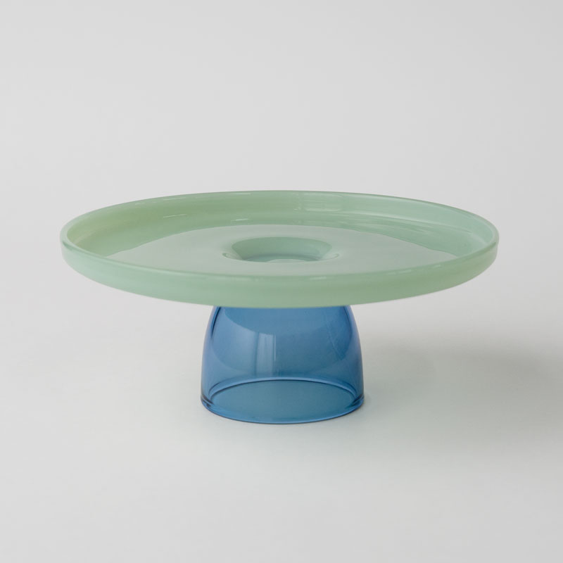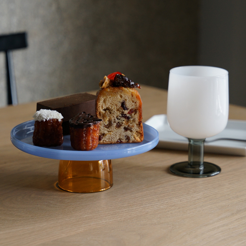 耐熱のミルクガラスと、透明グラスを組み合わせた脚付のフードスタンドです。
