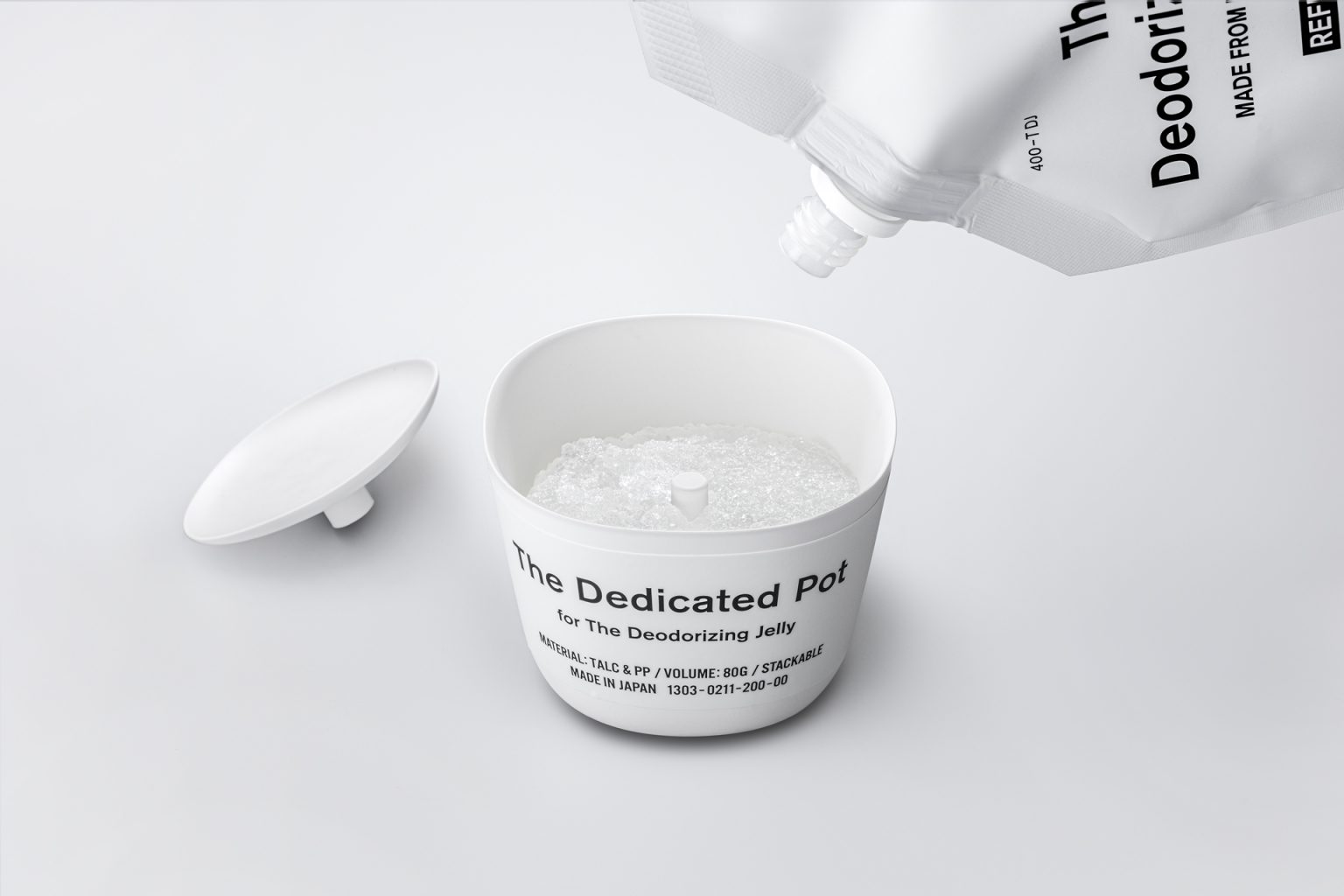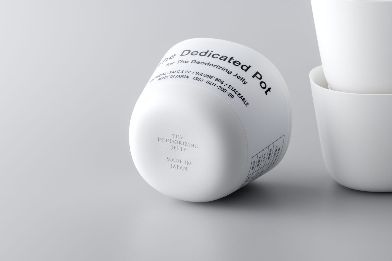 北海道北見市を拠点に「土、水、空気」に関する研究を日々重ねる環境大善の消臭ゼリーをベースに、THE消臭ゼリーと置き型の専用ポットです。