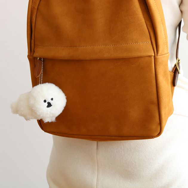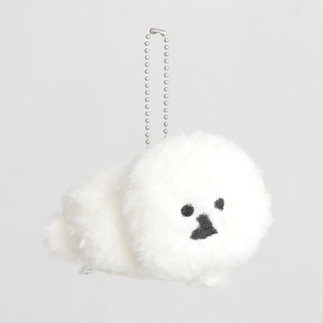 ふわふわ、モコモコの真っ白な毛並。とても気持ちのよい触り心地です。丁寧な刺繍で再現されたつぶらな目鼻が、毛に若干埋もれています。