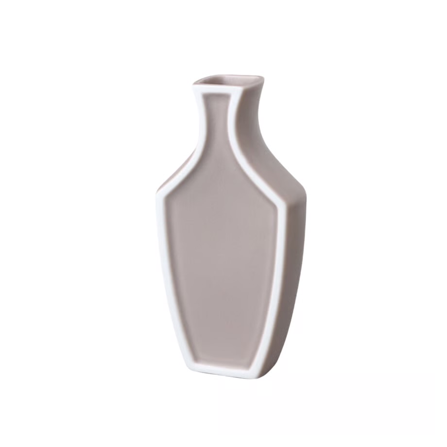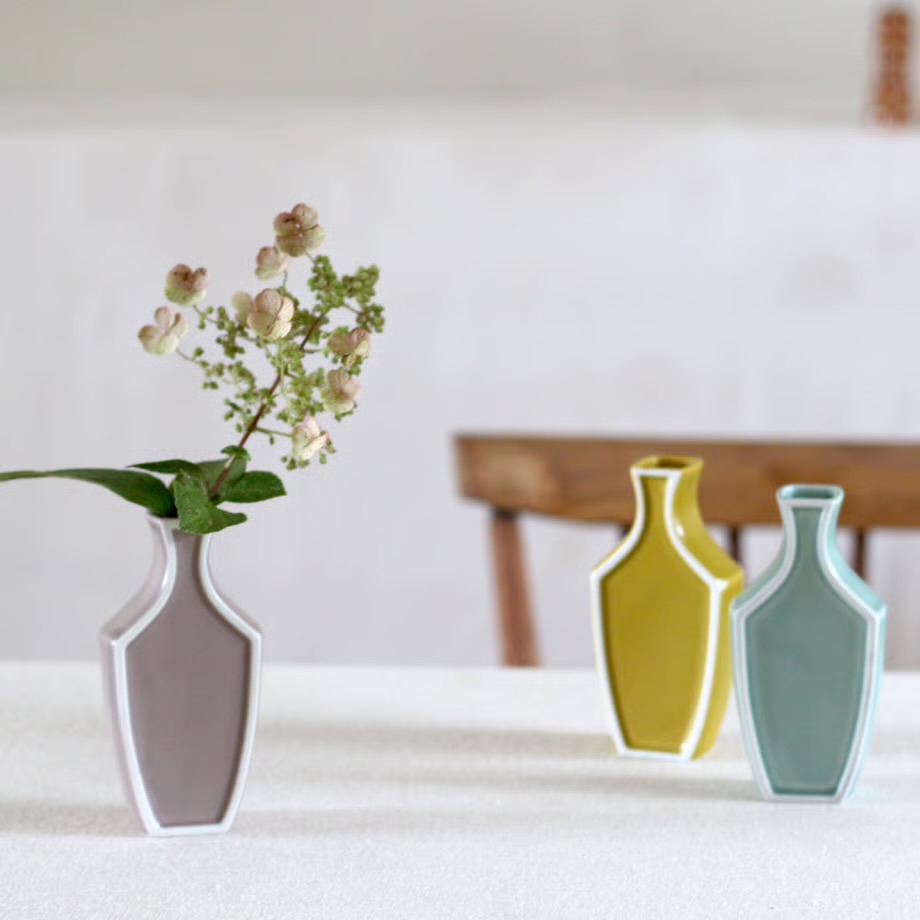 縁取りの釉をはがした白い線が平面のように見える遊び心のある花器です。