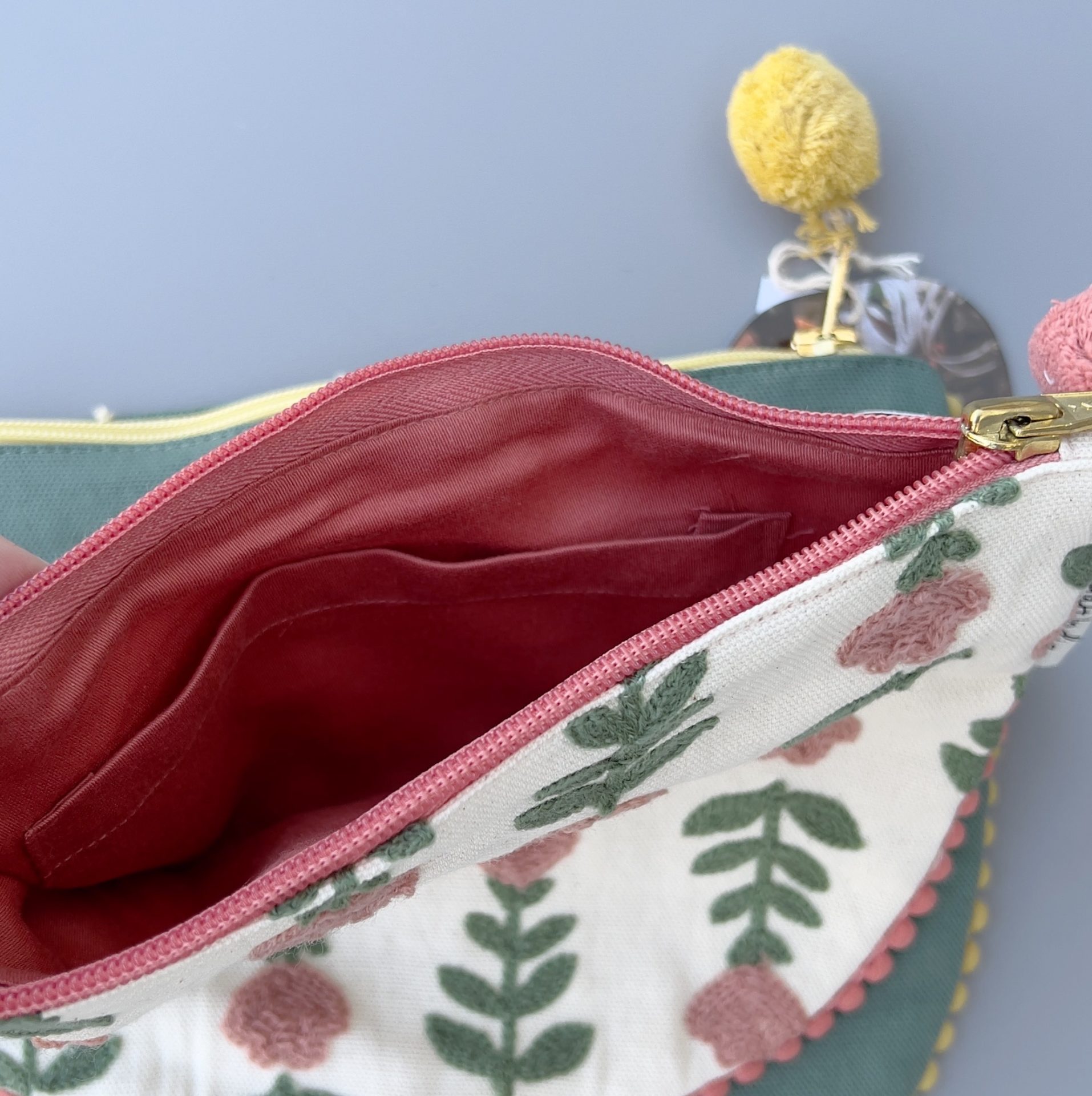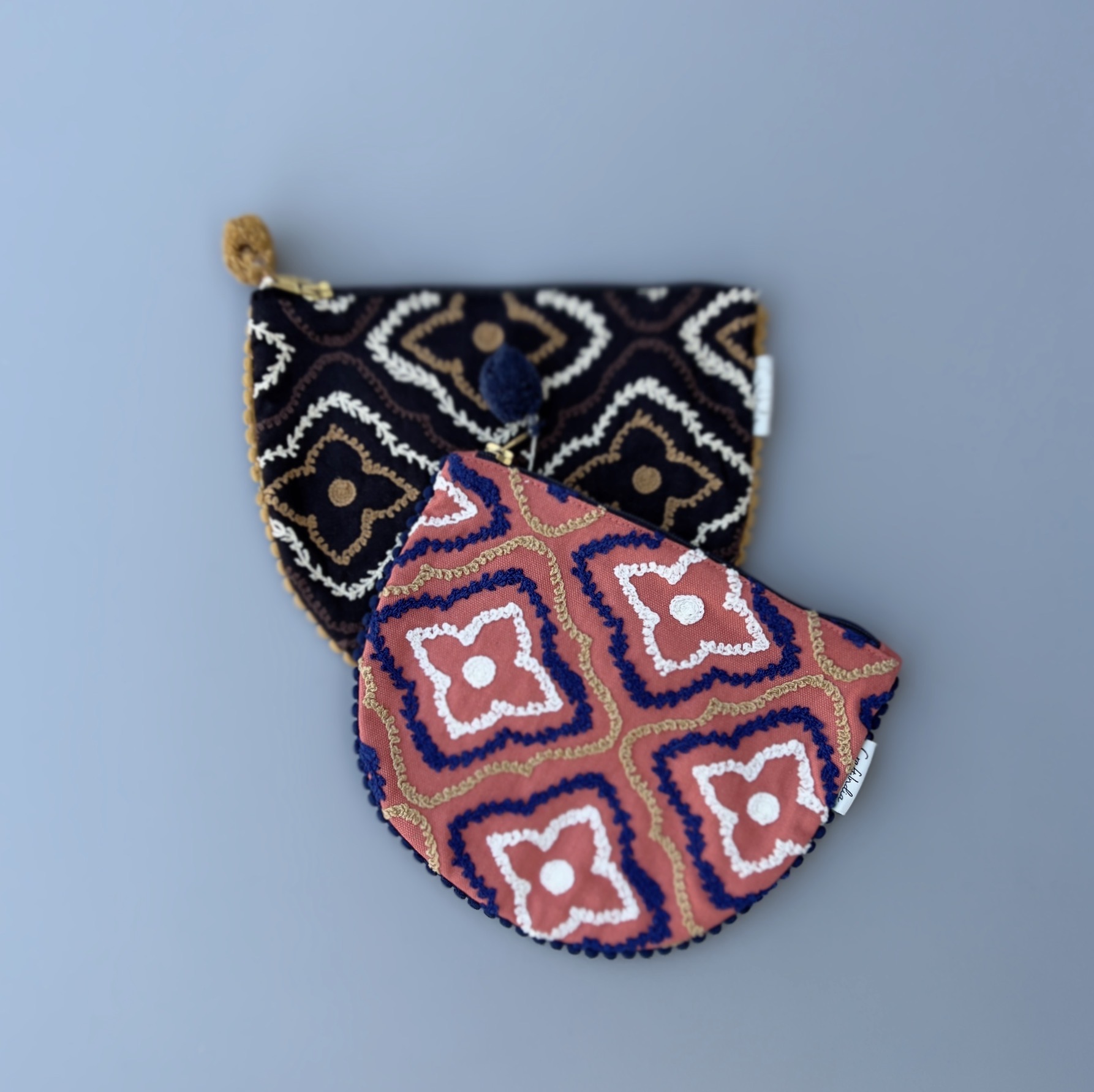 chabbit ポーチ ポーチ ステッチで柄を描く”クルーエル刺繍”。 浮き上がるような立体的な質感と素朴で温かみのある風合いが魅力です。 サイズは18×22cm 2420yen 2023-10-18 by chabbit chabbit pouch < 別子飴 巾着バッグ >