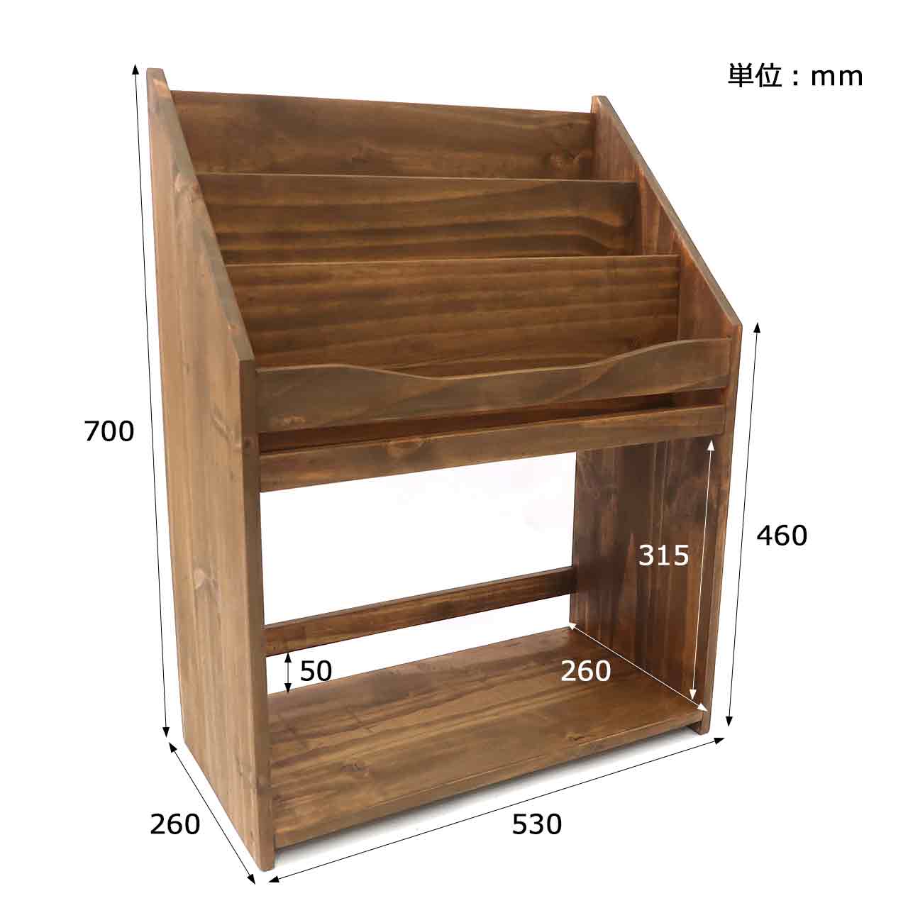 小学校や図書館にあるような、どこか懐かしい佇まいのマガジンラックです。