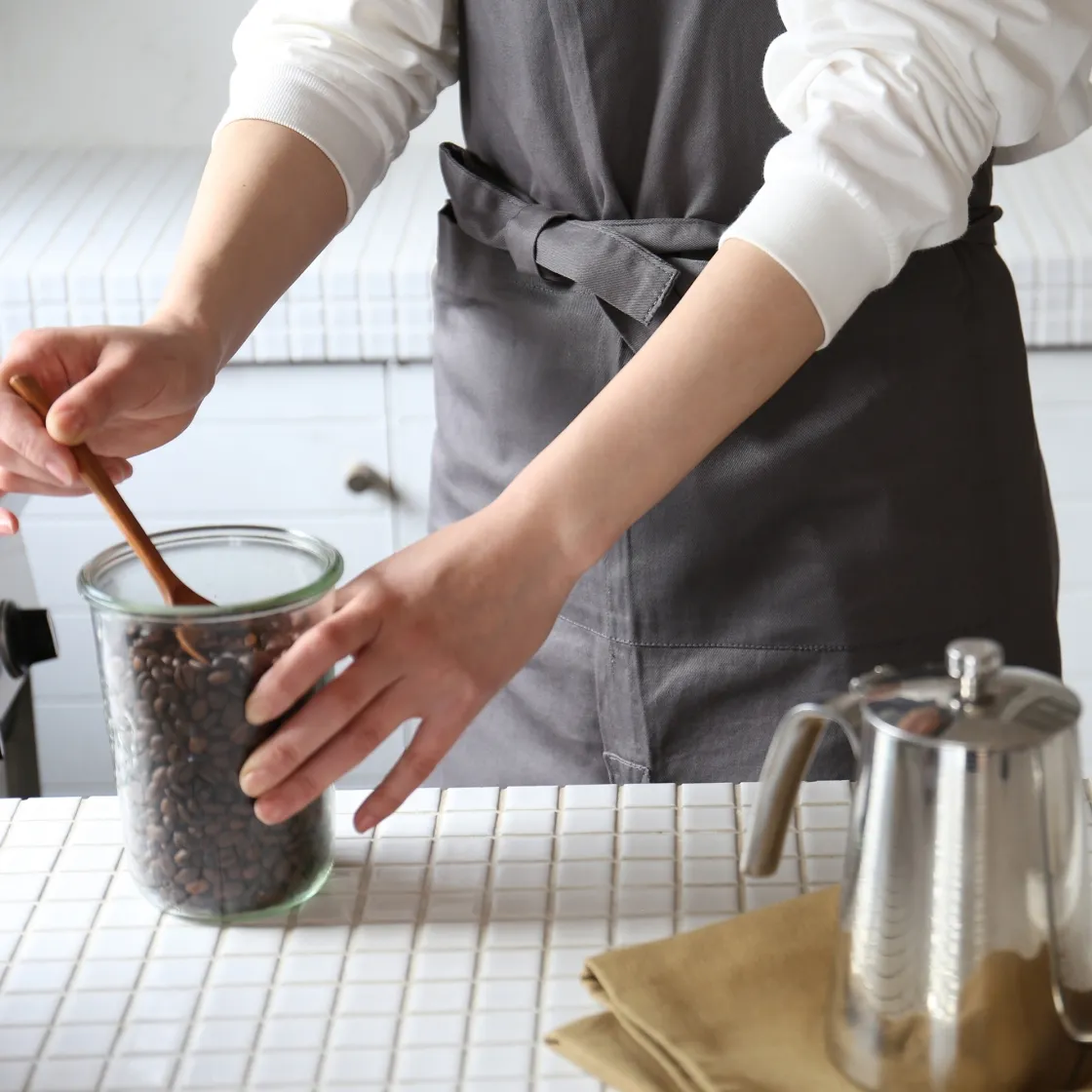 「見せる収納」として、コーヒーを豆の種類ごとに分けて並べても。