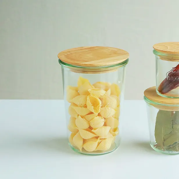 口が広く大きい容量で、粉類やショートパスタなどの保存に。