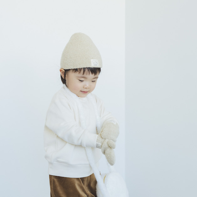 手袋の産地である香川県の工場で丁寧に作られたニット帽は、マシュマロのようなふわふわで柔らかな手触り。チクチクしにくいのも嬉しいポイントす。
