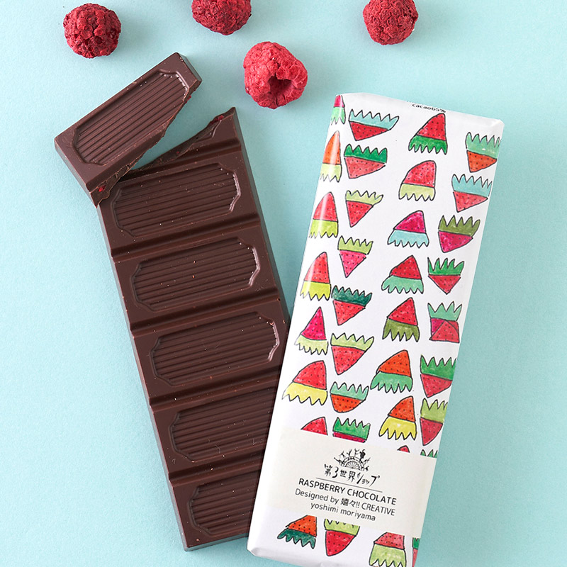 ラズベリーチョコレートは、 森山 幸美さんの「ベリー」のアートワークがデザインされたパッケージ。