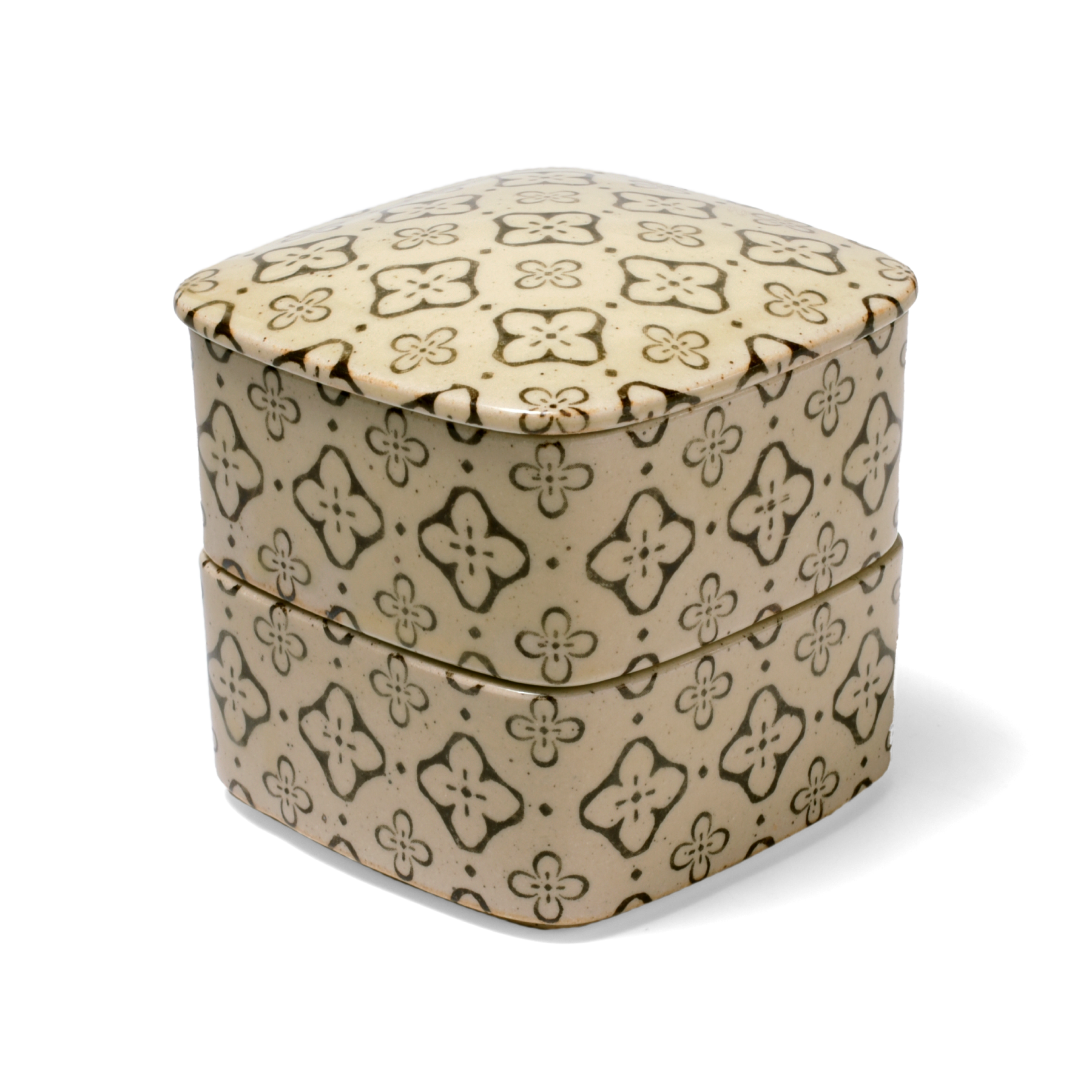 chabbit 野花 二段重 野花 二段重 再入荷 図案化した小花の模様と丸い角のフォルム、小さめのサイズが可愛らしい二段重です。 青色の絵付けが引き締まった印象の「呉須」と、クリーム色の釉薬と茶色の絵柄の組み合わせが温かみのある「焦茶」の2種類の展開です。 おかずやお漬物を盛り付けて食事時に並べたり、お菓子を詰めてティータイムに使うのもおすすめです。 サイズはW108mm/ D108mm/ H110mm 電子レンジ、食洗機使用可能です。 7480yen 2025-12-26 by chabbit chabbit kitchen studio m’ < ベリーボウル 一花 カップ >