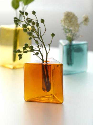 ころんとした多角形フォルムがユーモラスなミニサイズフラワーベースです。