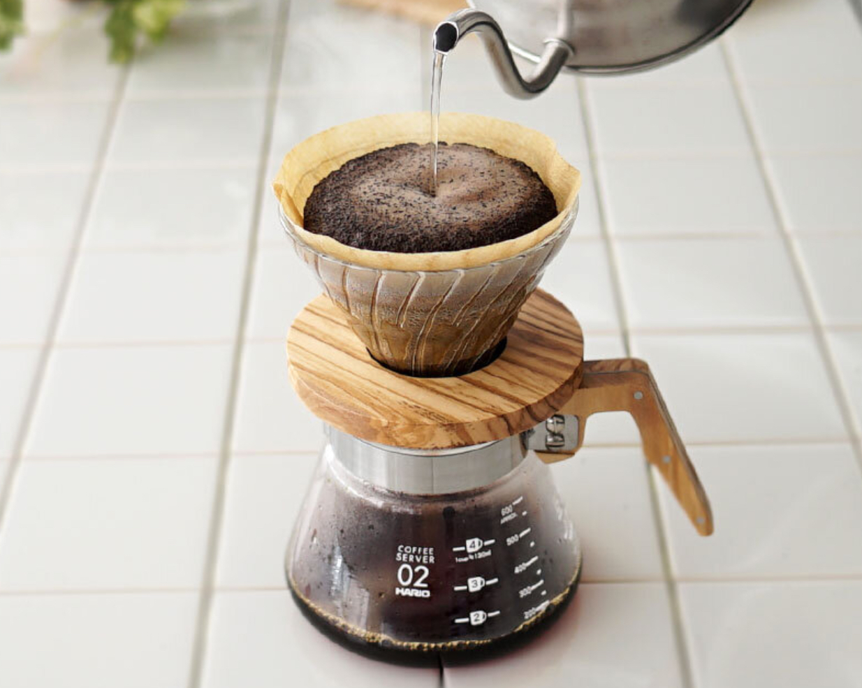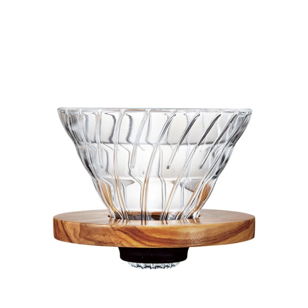 chabbit HARIO コーヒードリッパー HARIO V60耐熱ガラス透過ドリッパーオリーブウッド02 円錐型で、内部に溝(スパイラルリブ)があるのが特徴です。 一般的な扇形のものと異なり、こちらは円錐型。 お湯が中心に向かって流れ、フィルターの下までぎっしり詰まったコーヒー粉の層をじっくりと通過するため、旨味(コーヒーオイル)をより多く抽出することができます。 下に空いた大きめの穴によりお湯が溜まらず流れるので、 ゆっくり注いで濃厚な味に、手早く注いでスッキリした味に…と味わいに自在に変化をつけられます。 サイズは幅120×奥行120×高95mm、口径115mm 1-4杯用です。 4400yen 2024-08-17 by chabbit chabbit coffee kitchen < マグツリー コーヒーサーバー600 >