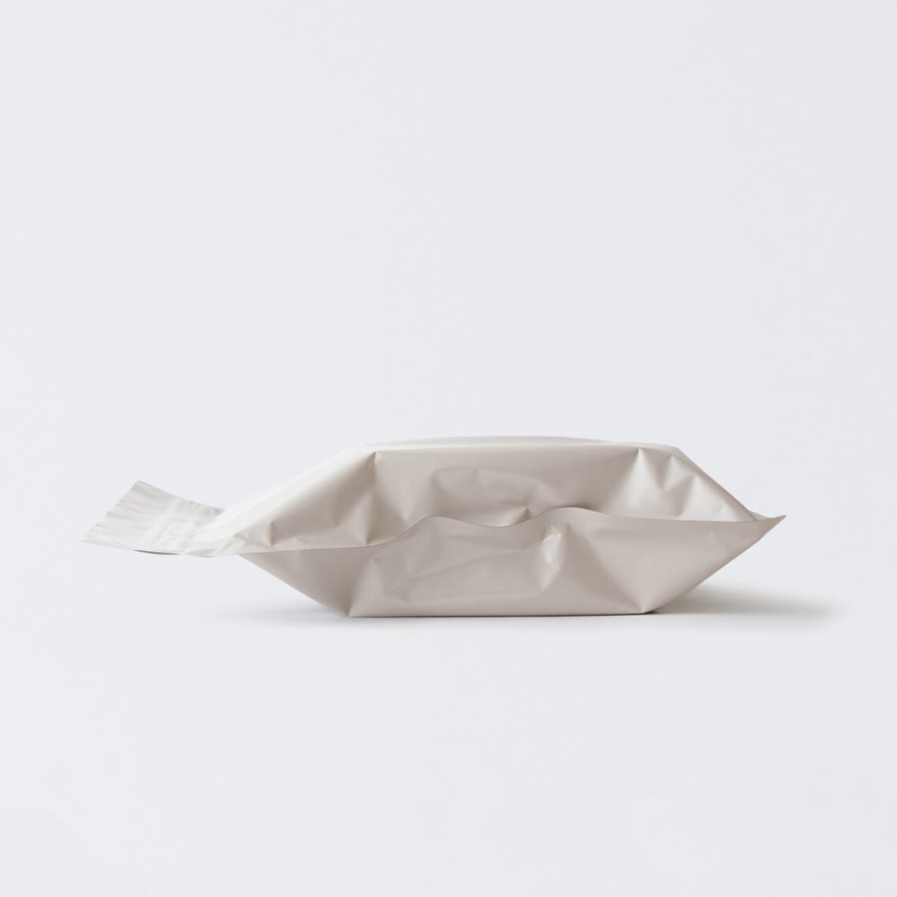 光・空気・臭いを遮断するアルミを挟んだ三層構造にすることで、おいしさを閉じ込めます。袋を透過する空気量が少ないので、冷凍庫臭がつきにくくなっています。