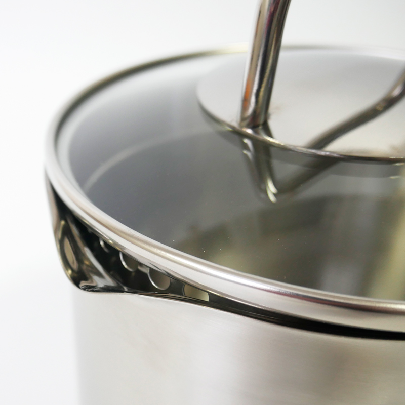 ふたに湯切り穴が付いているので、パスタなど麺類の調理や野菜の下茹での際、ざるやボウルを使用しないで調理ができ便利です。