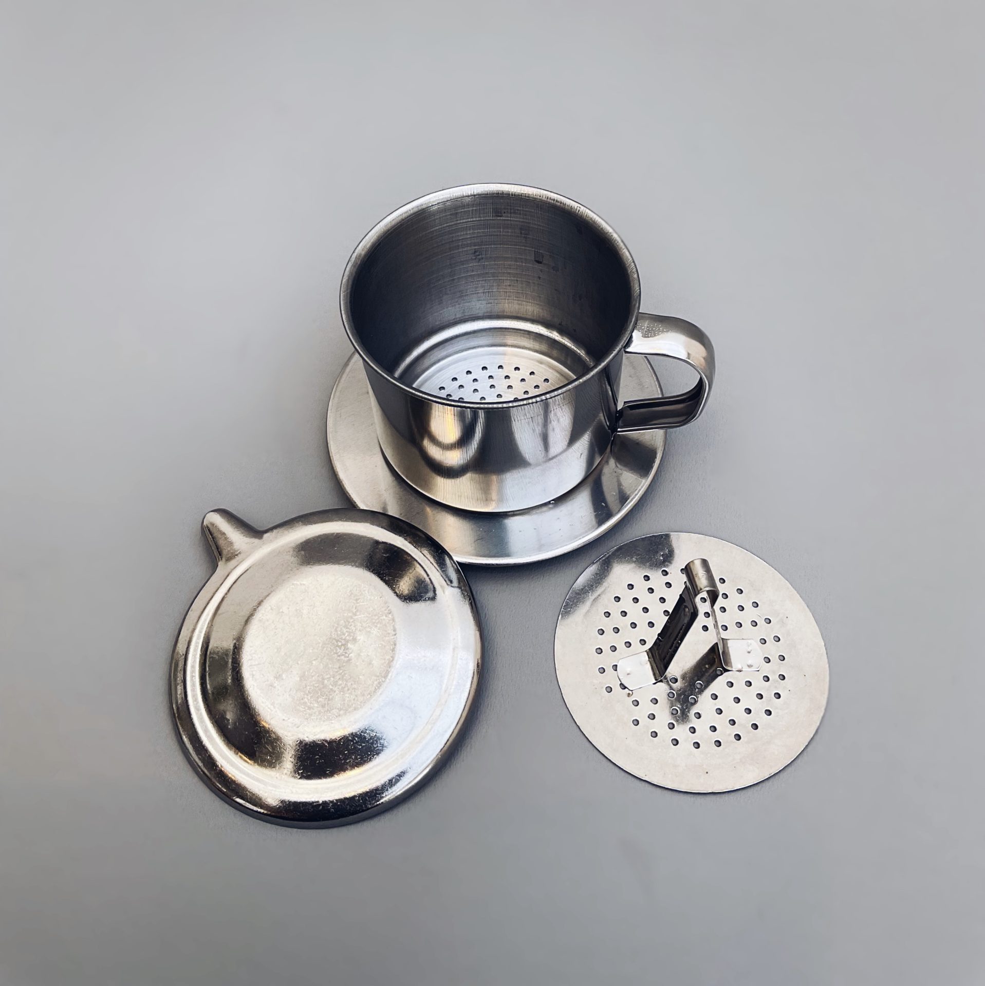 ベトナムの伝統的なコーヒーを入れる為のステンレス製コーヒーフィルターです。ベトナムコーヒーといえば深煎りのコーヒーに練乳を入れて飲む濃厚な味わいのコーヒーです。旅行の際やアジアンカフェなどで飲まれた方も多いのではないでしょうか。抽出にはちょっと時間のかかるコーヒーフィルターですが、その待ち時間もちょっとしたワクワクタイムです。