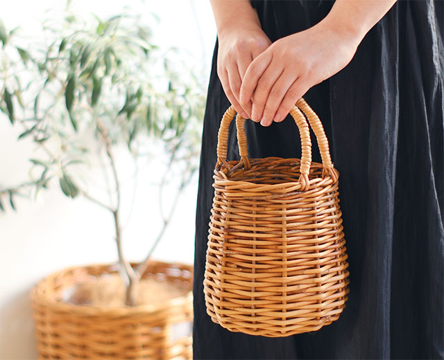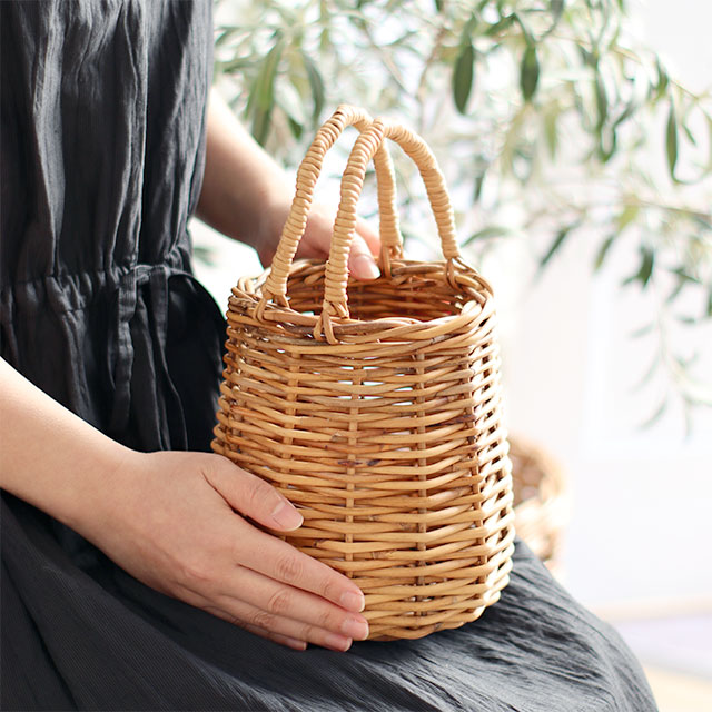 chabbit さんぽバスケット さんぽバスケット ヨーロッパのアンティークデザインを思わせる風合い豊かな皮つきラタンかごバッグです。 かわいいころんとした形です。 3740yen 2024-05-14 by chabbit basket chabbit interior < ラウンドバスケット カゴバッグ >