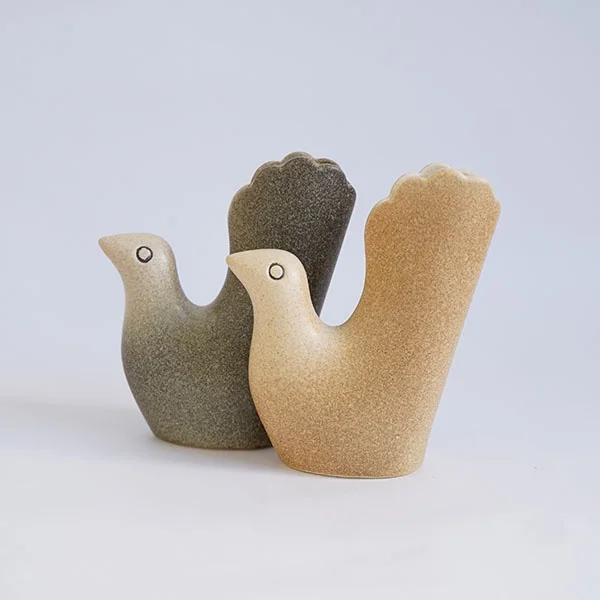 福岡県在住の陶芸家であり、アーティストとして活躍される鹿児島睦さんがデザインを手がけ、スウェーデンのKeramikstudion社にて一つ一つ手作業で生産された動物のフラワーベース「En Liten Van」。長い時間をかけて色合いや大きさをすり合わせ、とても愛らしいアイテムが出来上がりました。「小さな友達」という意味を持つそのまま飾っておくだけでも可愛い動物たち。お包みしているオリジナルプリントのハンカチはやや大判サイズで、使わない花器をしまっておくとき、大切な家具の上に飾るときのアクセントクロス、そしてお弁当などを包むなどいろいろな用途で使っていただけるようなイメージで製作しています。お箱付きで、贈り物にもピッタリです。