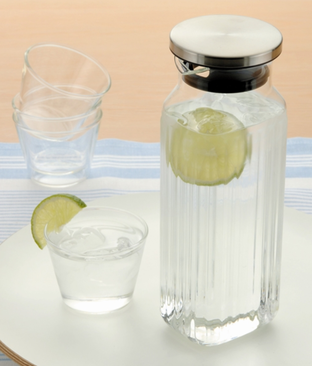 ガラスのレリーフが清涼感を引き出します。上質感ありどんなテーブルシーンにもあうデザインです。