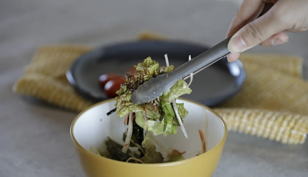 お皿の上に置いても大きすぎないサイズなので、卓上で取り分けをするのに便利です。