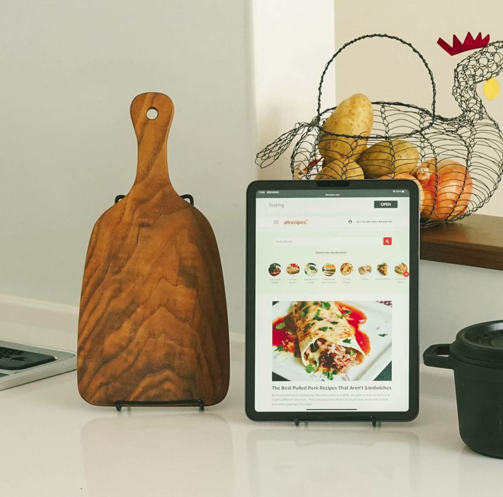 キッチンでは、本やタブレットを立ててレシピを見ながら料理ができます。