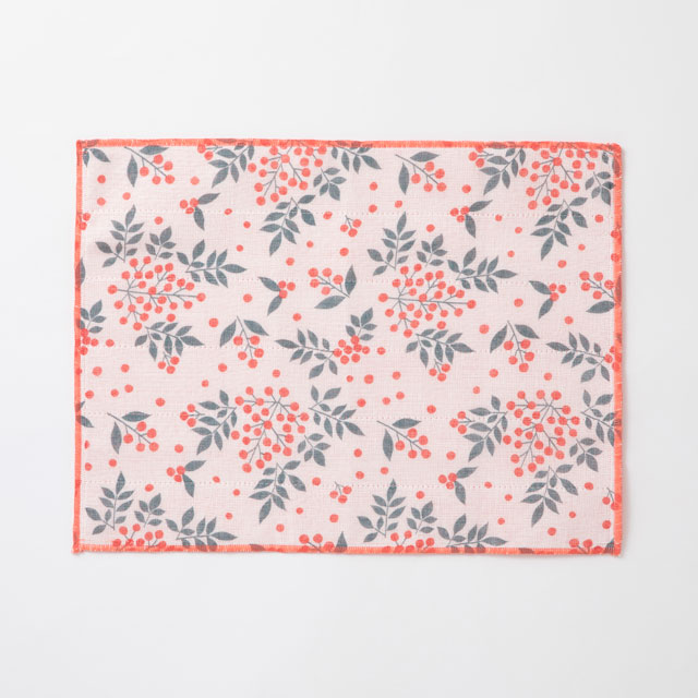 南天は昔から「難を転じて福となす」の語呂あわせから、厄災を除け、縁起のよい木とされてきました。そんな南天をモチーフにした柄のふきんです。
