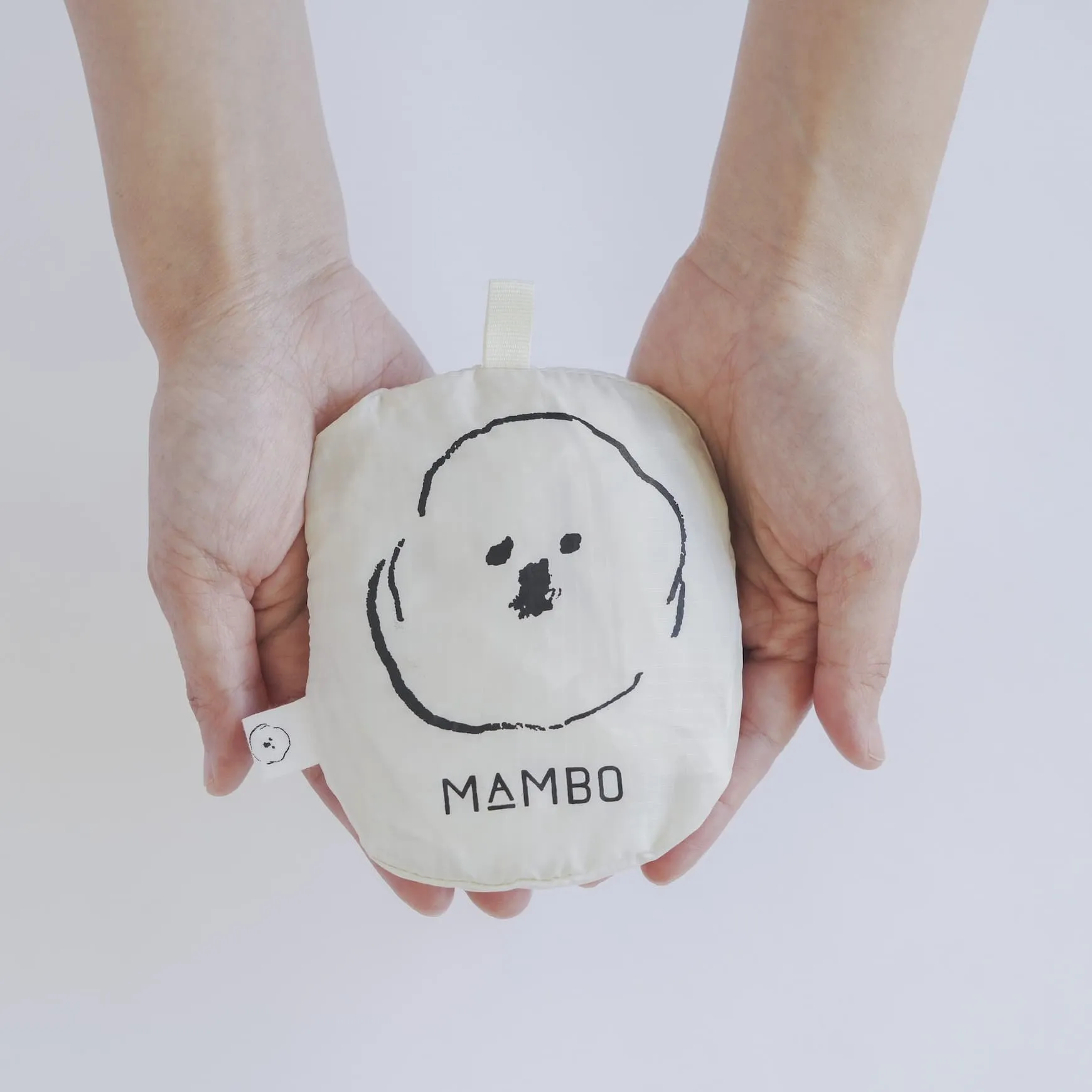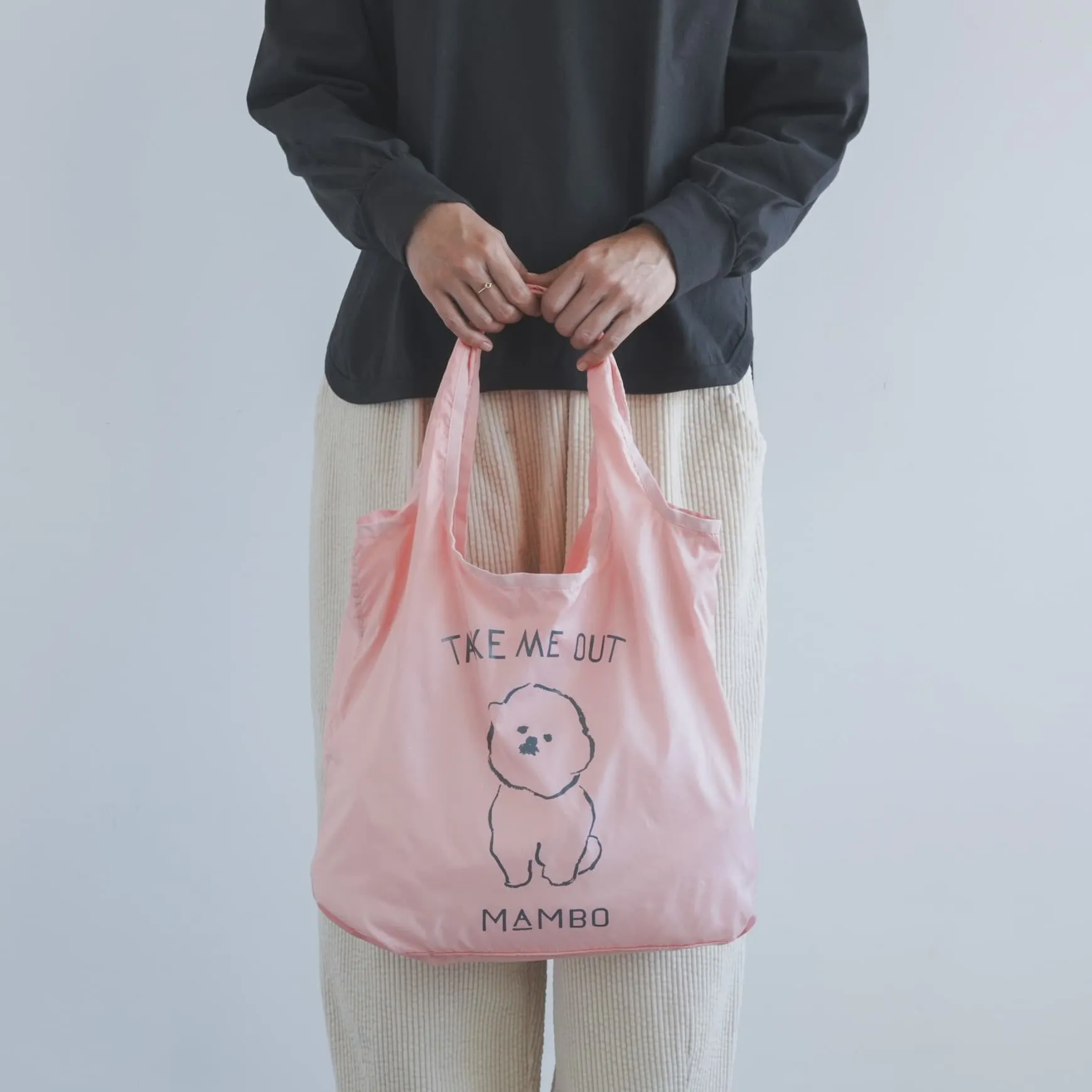 こちらは、そんな MAMBOの、小さく折りたたむことができるエコバッグ。人気のホワイトに加え、新色でピンクが登場しました。