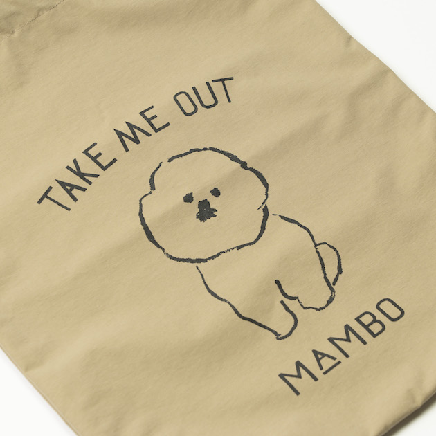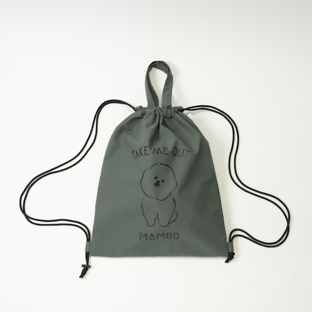 撥水・透湿防水加工のナイロン生地を使い、MAMBOをあしらった巾着型のトートバックができました。